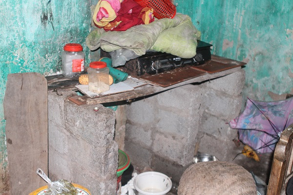Bà Kha mời khách vào nhà uống nước, nhưng mọi người đều phải đứng vì trong căn nhà chưa đầy 30m2 không có nổi một bộ bàn ghế nhựa. Tài sản đáng giá nhất là một chiếc xe đạp cũ mà hằng ngày, con gái bà đưa cháu đi học.