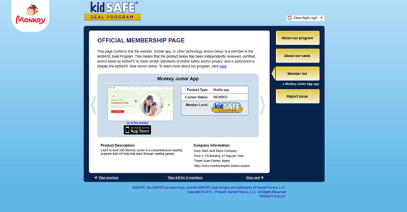 Monkey Junior (do Công ty cổ phần Early Start phát triển) là một ứng dụng học tiếng Anh phù hợp với trẻ từ 0 - 10 tuổi. Chính thức ra mắt từ năm 2014, Monkey Junior đã giành được nhiều giải thưởng danh giá như: giải Nhất Sáng kiến Toàn cầu tại Silicon Valley, giải Nhất Nhân tài Đất Việt, giải Vàng Asean ICT, giải Nhất thiết kế Doanh nhân châu Á… Phụ huynh có thể cho bé trải nghiệm ứng dụng này bằng cách click vào link: bit.ly/download_MJ |