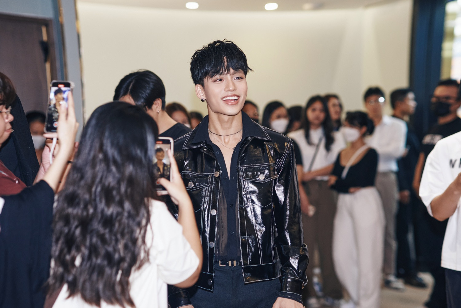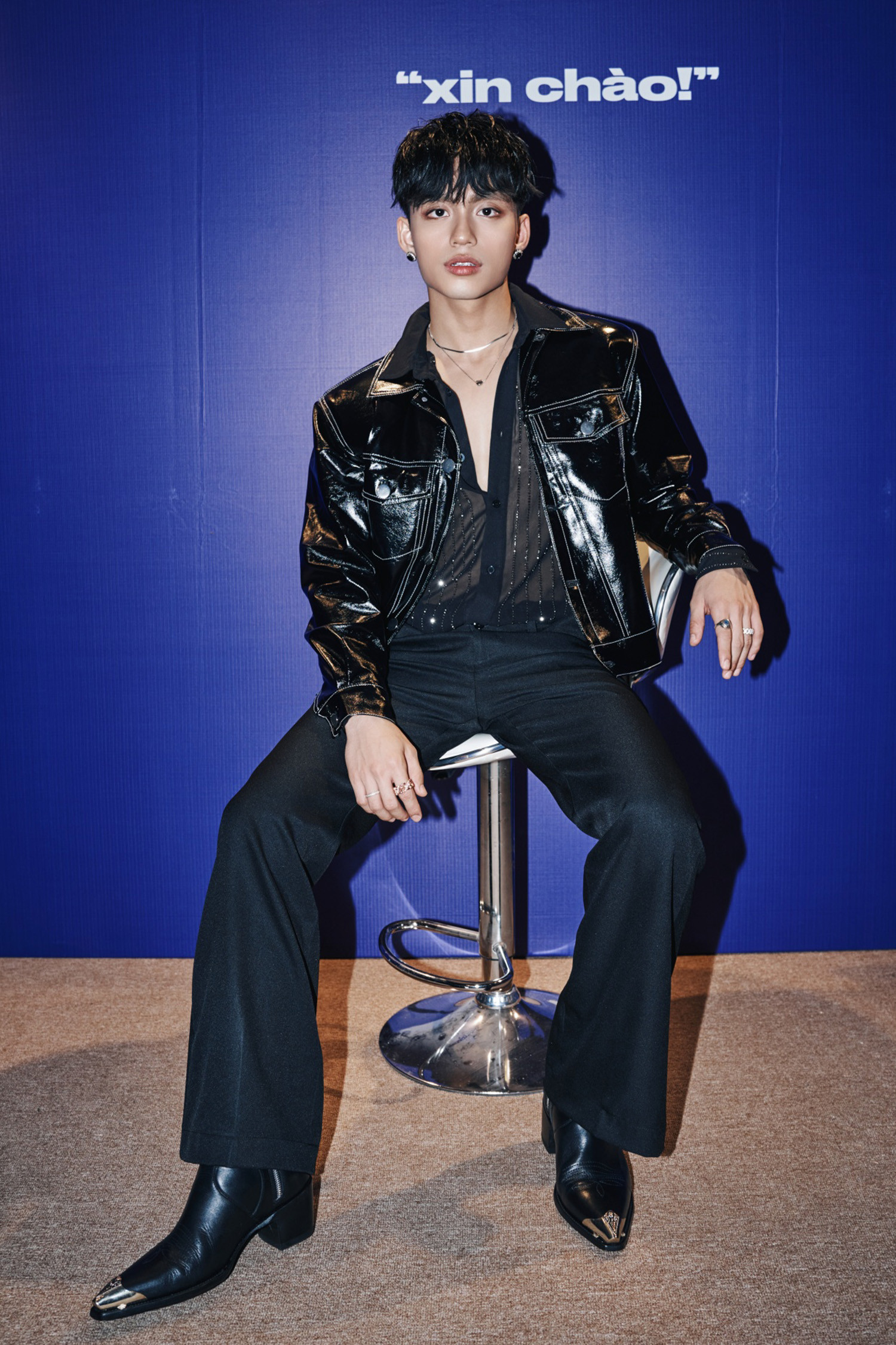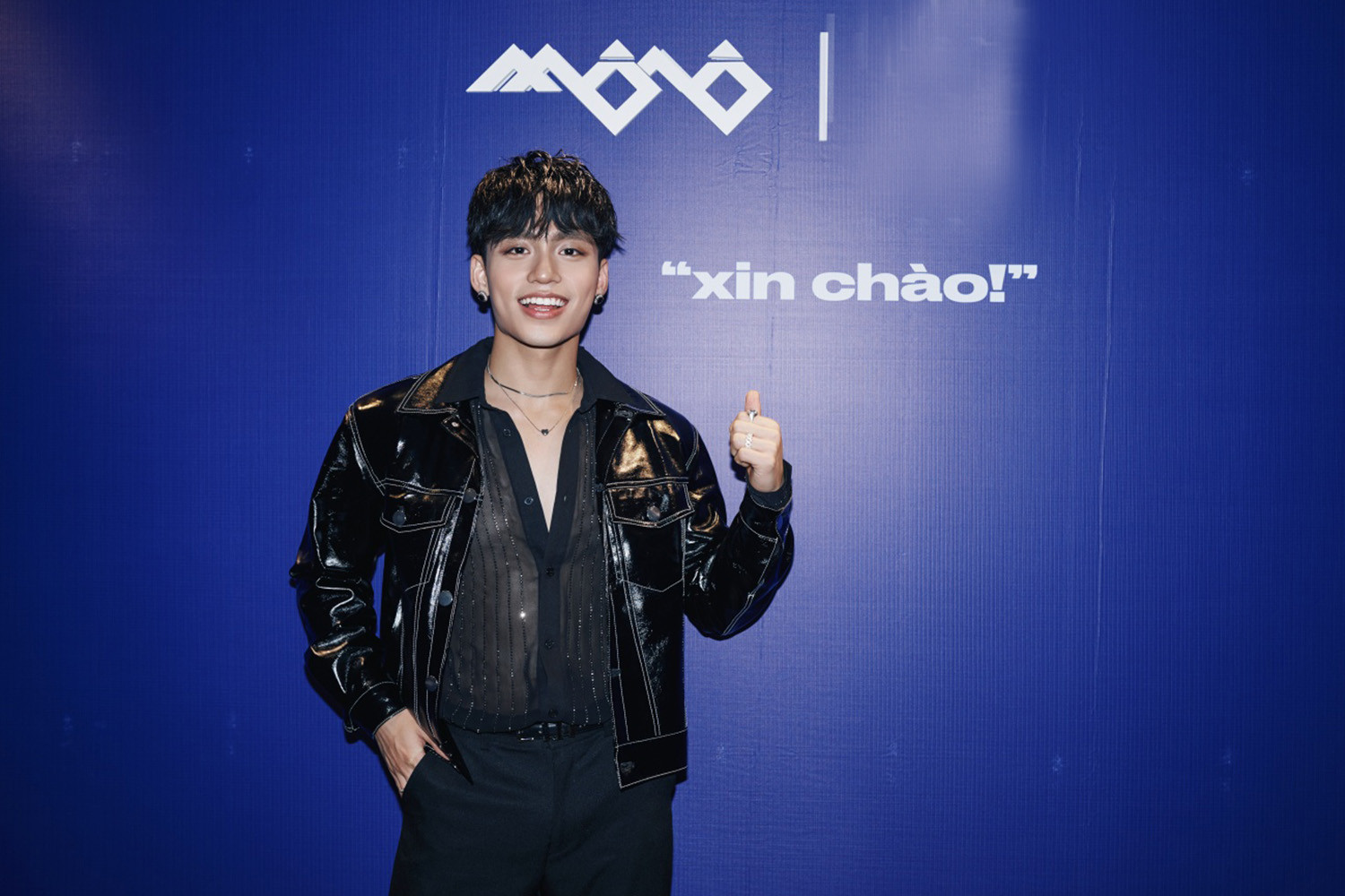 Chiều 6/6, MONO có mặt tại sự kiện ra mắt sản phẩm kết hợp với nhãn hàng quốc tế có lịch sử 100 năm.Với ca khúc 'Waiting for you', MONO là tân binh có tốc độ phát triển nhanh ở showbiz Việt. Sau 5 tháng ra mắt, anh nhận giải thưởng 'Nam ca sĩ được yêu thích nhất' và 'Gương mặt mới xuất sắc' của Làn Sóng Xanh 2022.Nam ca sĩ diện trang phục đen với áo khoác da và quần ống loe, được người hâm mộ vây kín khi xuất hiện.MONO cho biết hồi hộp đến không ăn được trước sự kiện. Anh cảm thấy tự hào khi là nghệ sĩ Việt đầu tiên kết hợp với hãng có hơn 1 thế kỷ phát triển.Với 2 chữ "xin chào" được in trên BST, MONO tự hào khi mang ngôn ngữ Việt Nam đến với thời trang quốc tế. BST ra mắt với hai màu sắc chính, đen cơ bản, và xanh hướng đến đối tượng chính là Gen Z - thế hệ của sự sáng tạo, tự tin và khác biệt.Giọng ca sinh năm 2000 lần đầu giải thích về logo bản thân. Theo chiều dọc, logo có hình con sứa - linh vật của MONO, tượng trưng cho tình yêu, sự chấp nhận, kiên nhẫn và cân bằng. Khi gặp khó khăn, MONO nhìn vào con sứa và học cách bước qua khó khăn một cách tự do và nhẹ nhàng. Khi nằm ngang, logo MONO giống ngọn núi: vững vàng, chắc chắn.MONO tên thật là Nguyễn Việt Hoàng, là em trai của ca sĩ Sơn Tùng M-TP. Ca khúc 'Waiting for you' nằm trong EP ra mắt của MONO là bản hit nổi bật nhất năm 2022. Thời gian qua, MONO chứng minh mình là 1 tân binh chăm chỉ khi biểu diễn với tần suất cao, phủ sóng nhiều sân khấu trên cả nước.