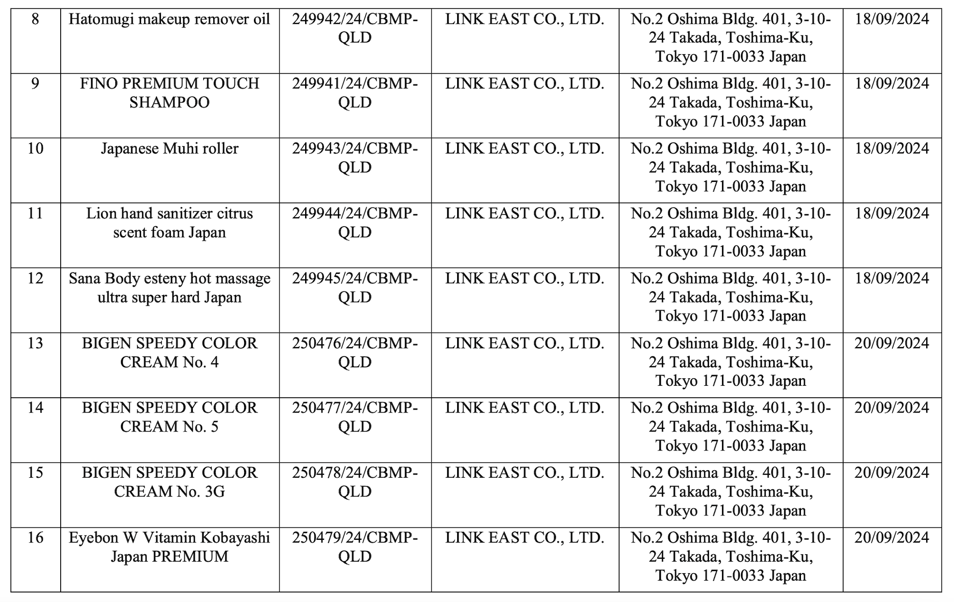Trong 32 mỹ phẩm do LINK EAST CO., LTD (Nhật Bản) sản xuất và Công ty TNHH JP-Bùi Đặng đăng ký công bố bị thu hồi số tiếp nhận lần này có nhiều sản phẩm của các nhãn hiệu nổi tiếng như sữa rửa mặt Hadalabo foaming facial cleanser hay kem chống nắng Anessa perfect UV Sunscream, được Cục Quản lý Dược cấp số tiếp nhận phiếu công bố vào tháng 9/2024.
