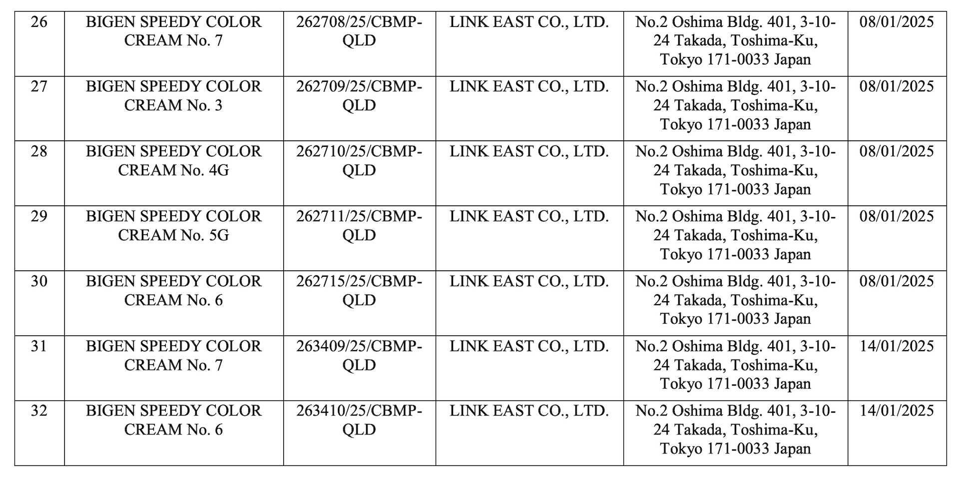 Nhiều mỹ phẩm trong nhóm 32 sản phẩm trên mới được Cục Quản lý Dược cấp số tiếp nhận phiếu công bố cho Công ty TNHH JP-Bùi Đặng hồi tháng 1/2025 nhưng đầu tháng 6, doanh nghiệp đã có đơn xin thu hồi tự nguyện.
