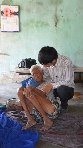 “Bà con trong tổ dân phố thay nhau chăm sóc cụ. Nhưng khổ nỗi ai cũng nghèo và bận rộn chuyện mưu sinh. Nên việc chăm sóc cụ chưa được chu đáo. Chúng tôi đang làm hồ sơ đưa cụ vào trung tâm dưỡng lão. Nhưng chưa biết phải làm hồ sơ thế nào…” Ông Anh nói.