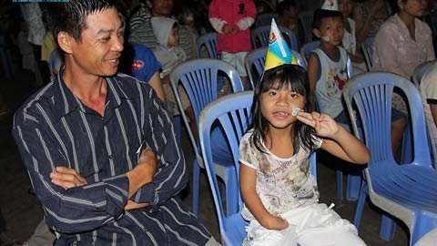 | Một trẻ khuyết tật hớn hở tạo dáng trước ống kính trong chương trình trung thu do cộng đồng Internet tổ chức tại quận 12, TPHCM. |