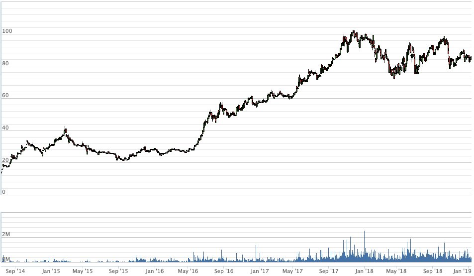 Kể từ khi niêm yết trên sàn HoSE từ giữa năm 2014 đến nay, mã MWG của Thế Giới Di Động chưa bao giờ chứng kiến nhiều sóng gió như năm 2018 vừa qua. Thông thường, mã này tăng trưởng đều đặn qua các năm và không biến động giá với biên độ lớn, thường xuyên như năm 2018.