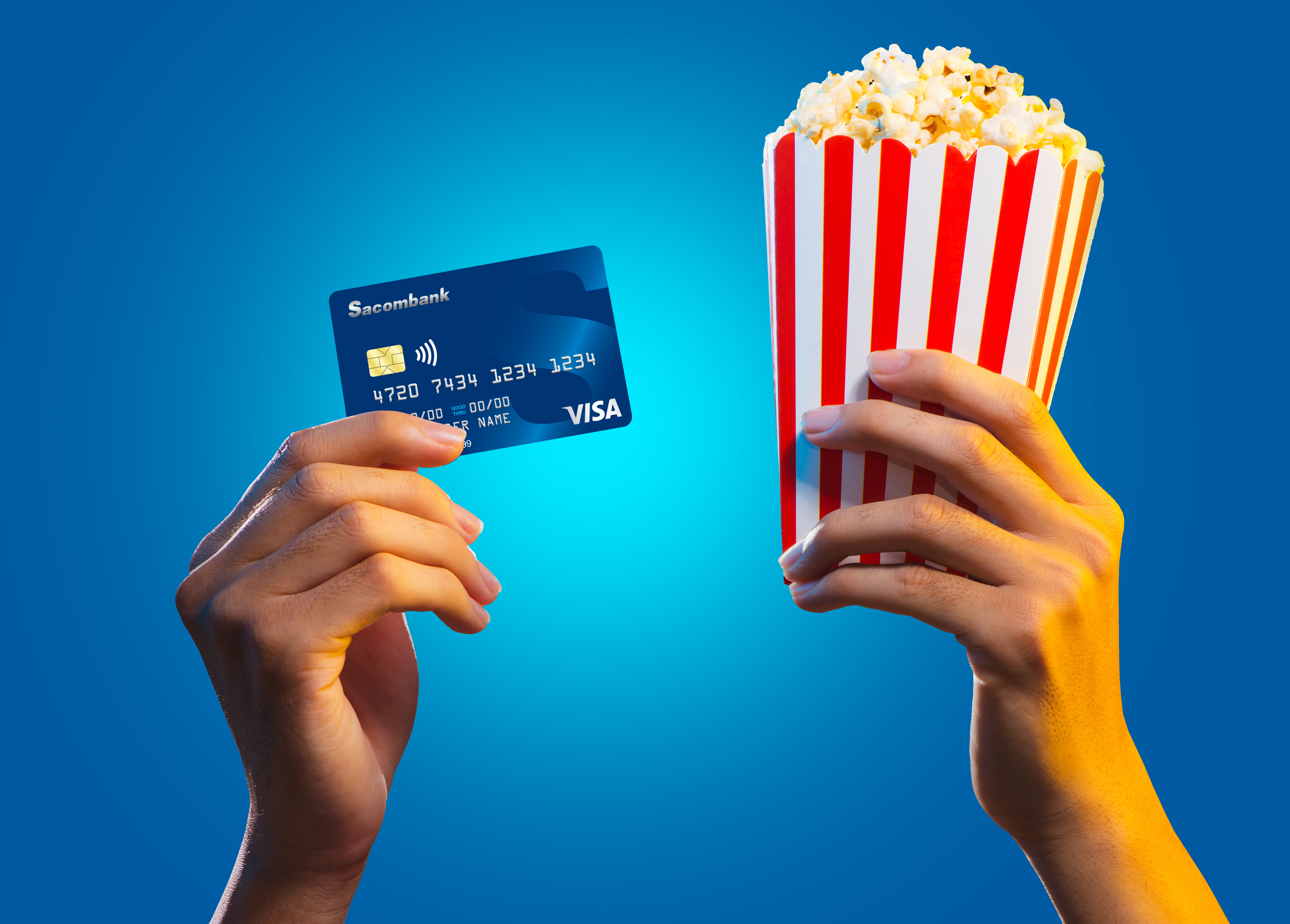 Bạn cũng có thể mua vé xem phim qua các website, ứng dụng hoặc tại quầy và lựa chọn thanh toán vé, bắp nước đi kèm bằng thẻ tín dụng để được hưởng các khuyến mại từ rạp phim và các ngân hàng. Ví dụ như hiện nay, khách hàng dùng thẻ tín dụng Sacombank có thể mua một cặp vé 2D của CGV với giá chỉ với 100.000 đồng - vừa nhanh gọn, vừa an toàn, lại còn nhận được khuyến mại.