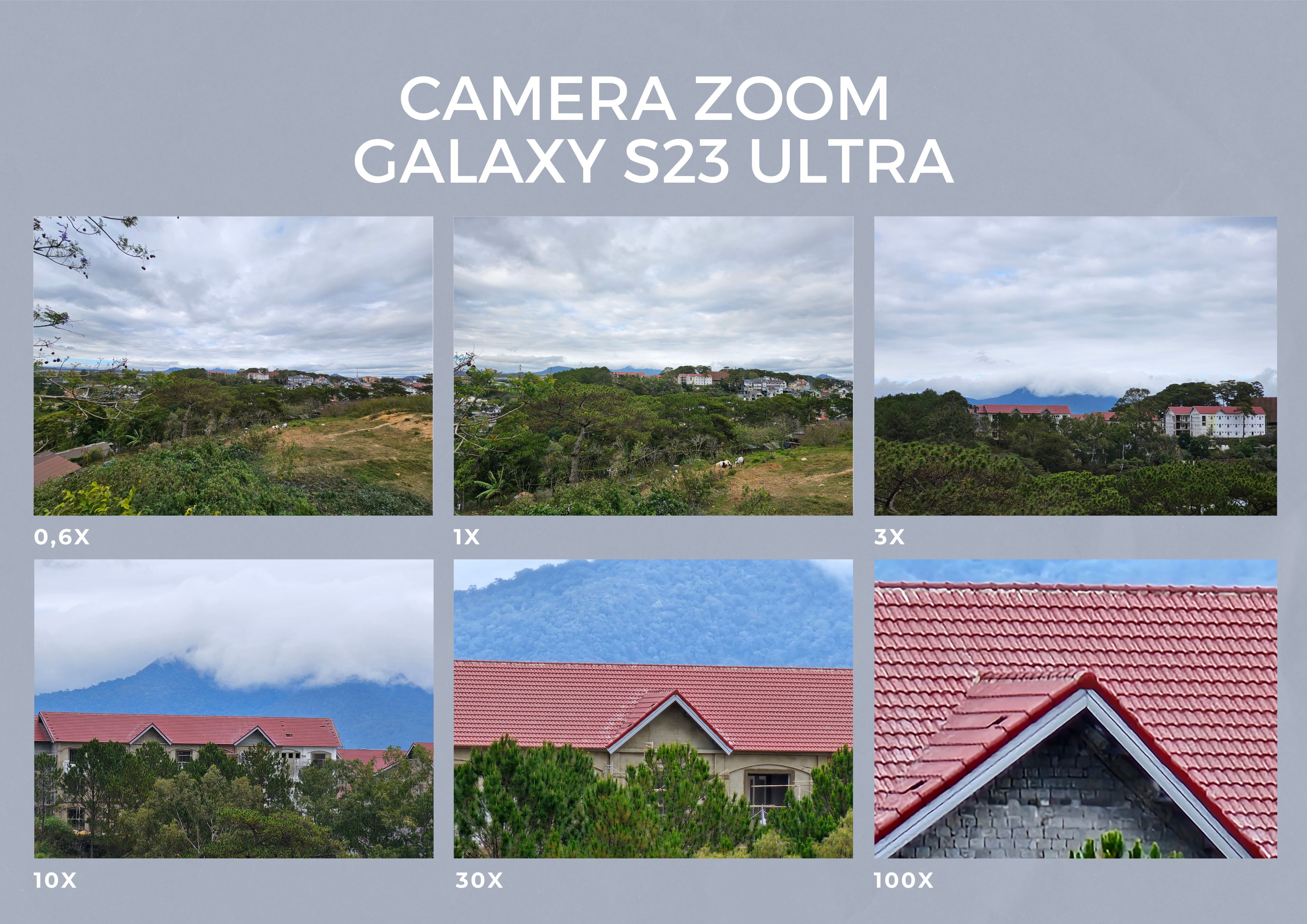 Về khả năng thu phóng, Galaxy S23 Ultra vẫn kế thừa những điểm mạnh vốn có của dòng S như cho phép người dùng chụp, chuyển đổi ở các cỡ cảnh đa dạng khác nhau từ 0,6x, 1x, 3x, 10x, 30x và lên đến 100x.