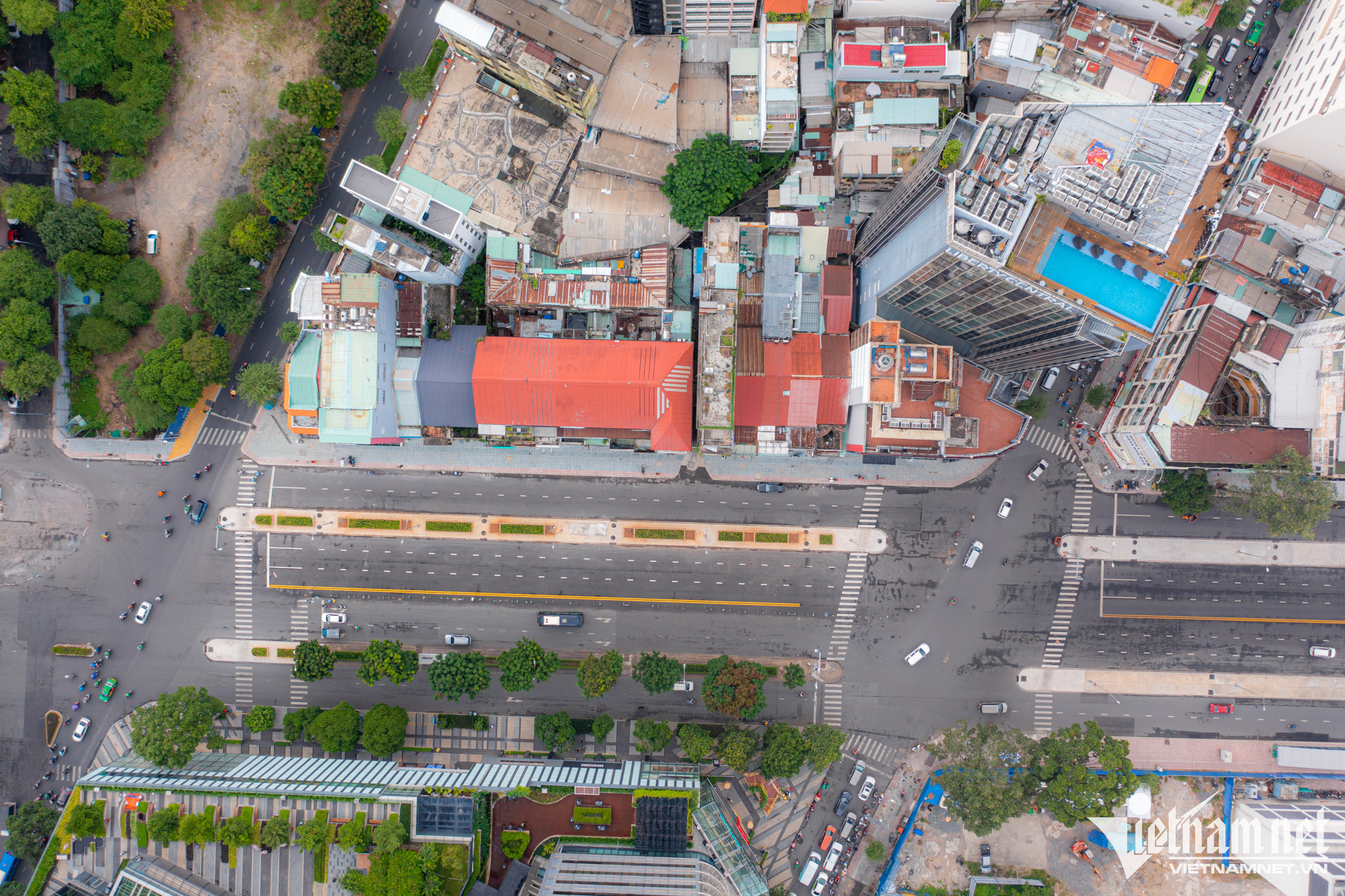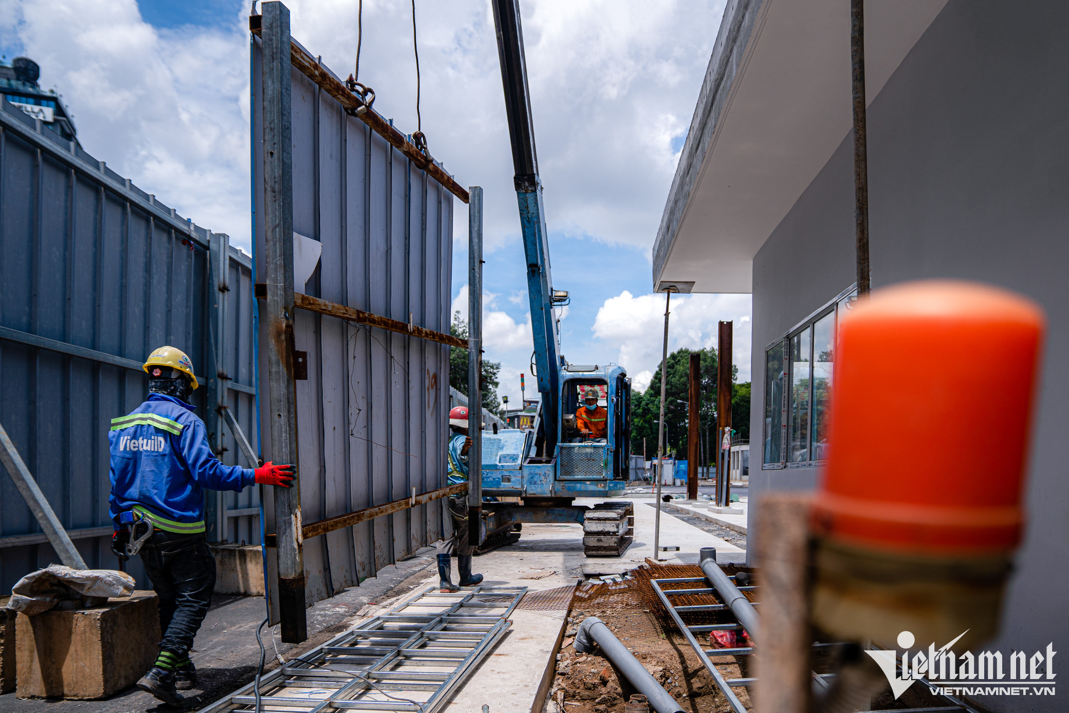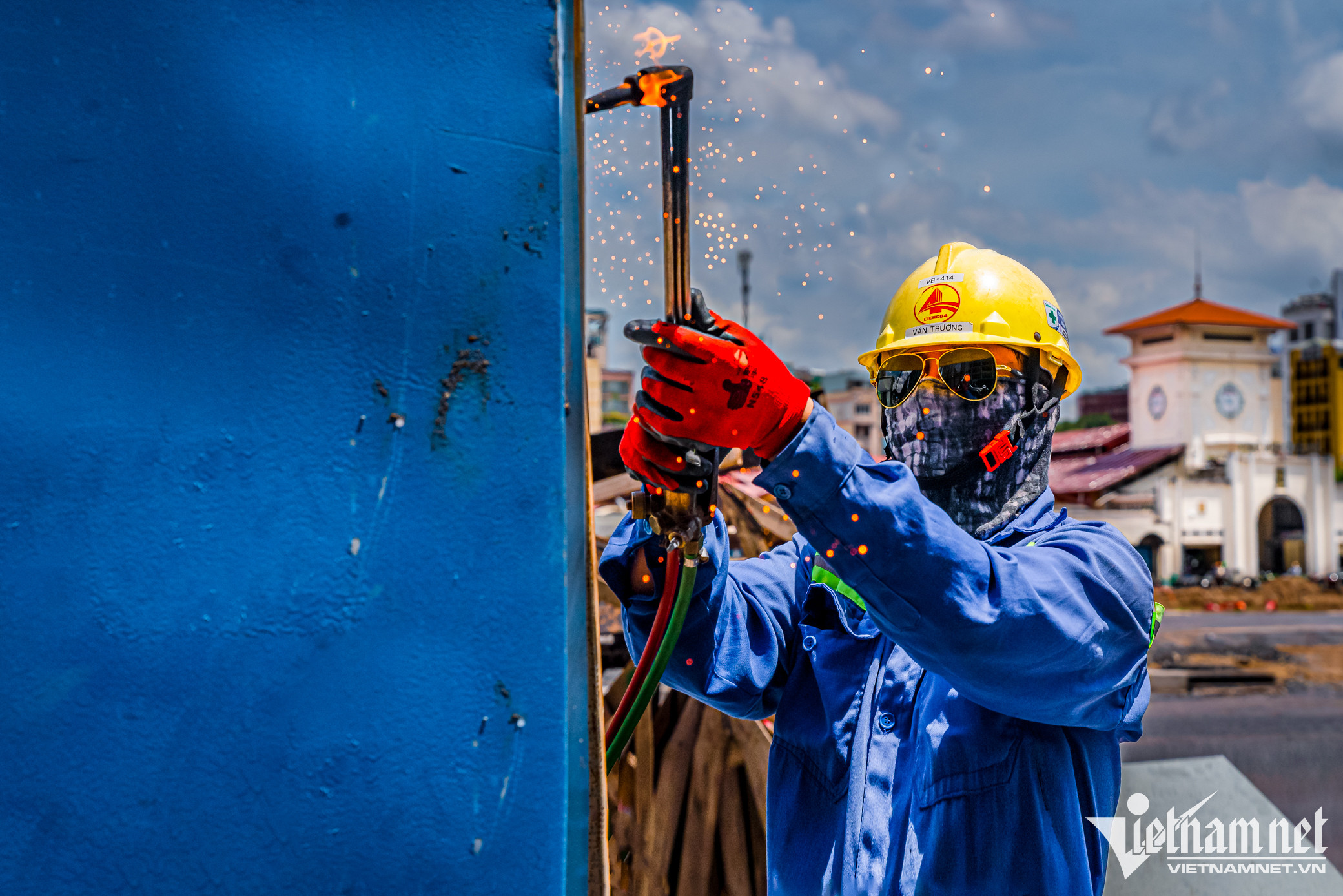 Từ 27/8, đơn vị thi công bắt đầu tháo dỡ rào chắn trên đường Lê Lợi và một phần lô cốt tại ga ngầm Bến Thành tuyến Metro số 1 (TP.HCM).Công tác tháo dỡ rào chắn đã thực hiện được 3 ngày nhằm chuẩn bị bàn giao mặt đường theo đúng lộ trình. Trong ảnh là khu vực đường Lê Lợi. Anh Văn Trường, công nhân ga ngầm Bến Thành đang hàn xì cắt thanh gá tôn.Theo Ban quản lý đường sắt đô thị TP.HCM, toàn dự án Metro số 1 đã hoàn thành 91,81%, riêng gói thầu CP1a đạt 96,80% tiến độ. Trên công trường có 4 xe lu liên tục nén đá dăm trước khi hoàn trả mặt đường.Nhà thầu dùng tạm phân cách gỗ để công nhân tiếp tục hoàn thiện công đoạn tái lập mặt bằng.Đường Lê Lợi có chiều dài hơn 800m với 10 làn xe từ điểm giao với đường Đồng Khởi đến đường Lê Lai. Tại dải phân cách của khu vực 2 trên đường Lê Lợi, anh Văn Bình đang lấp khung đổ bê tông cho bồn cây xanh. Anh cho biết mọi người làm việc rất khẩn trương để đơn vị chiếu sáng kịp lắp đặt hệ thống đèn đúng tiến độ, bàn giao mặt bằng.8 năm bị rào chắn Metro số 1 che khuất, việc kinh doanh và cuộc sống người dân trên đường Lê Lợi gặp nhiều khó khăn. Nhiều cửa hàng phải đóng cửa vì không thể buôn bán.Mặt bằng hơn 72m2 bị bỏ trống thời gian dài cũng vừa có chủ thuê mới sau khi rào chắn trên đường Lê Lợi được tháo bỏ. Người dân sống tại khu vực này cho biết sau khi tháo rào chắn, rất nhanh mặt bằng có khách thuê mới.Vừa qua, UBND quận 1 đã có văn bản đề xuất UBND TP nghiên cứu phương án đầu tư phố đi bộ trên đường Lê Lợi, nhằm tạo thêm sản phẩm du lịch và thu hút khách quốc tế. Sở GTVT TP.HCM cho biết sau khi tuyến Metro số 1 hoàn trả mặt bằng, đường Lê Lợi có thể tổ chức giao thông tương tự phố đi bộ Nguyễn Huệ, các phương tiện lưu thông 2 bên đường và khu vực tim đường chỉ phục vụ người đi bộ.Khu vực tháo dỡ rào chắn.