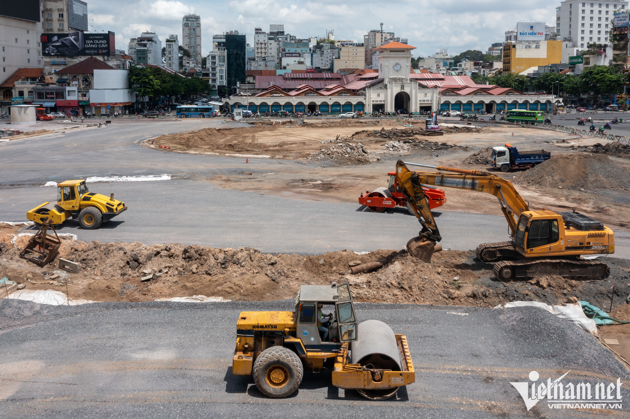 Sau 8 năm lập lô cốt phục vụ thi công tuyến Metro số 1, rào chắn ở cổng chợ Bến Thành và đường Lê Lợi đang được tháo dỡ để trả lại lối đi cho người dân TP.HCM.