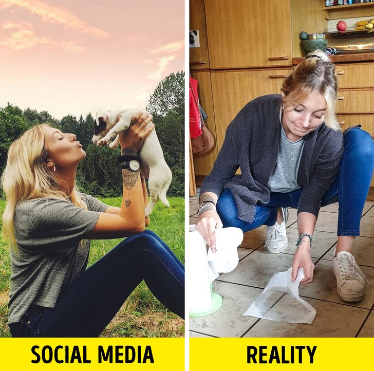 Những nhân vật “sống ảo” chỉ là người bình thường như tất cả chúng ta. Vì vậy, mỗi người hoàn toàn có thể nhìn thấy bản thân mình trong hậu trường chụp ảnh. Mới đây, cô gái có tên Brit đến từ Thụy Sỹ đã giúp mọi người hình dung rõ nét về sự khác biệt giữa ảnh đăng mạng và ảnh ngoài đời.