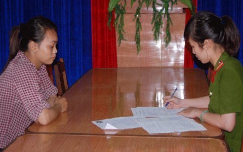 | Bị can Thảo tại cơ quan điều tra sau khi đầu thú (Ảnh: V.Thi) |