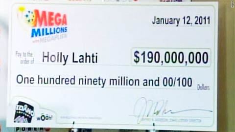 Holly Lahti sẽ chia giải thưởng sổ xố lớn thứ 2 trong lịch sử Mỹ này với Jim và Carolyn McCullar ở Washington. Nhà McCullar đã xuất hiện tại một cuộc họp báo thông báo họ giành được một nửa giải thưởng 380 triệu USD.