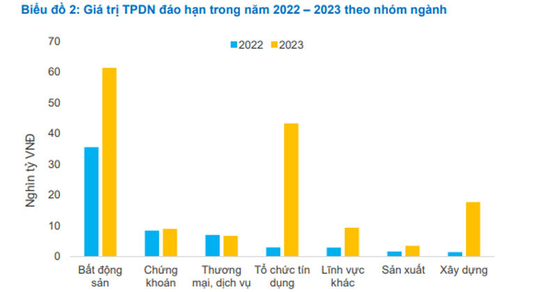 Theo FiinGroup, chỉ tính riêng ngành bất động sản đã chiếm 59% tổng giá trị đáo hạn. Áp lực đáo hạn trái phiếu doanh nghiệp tính riêng trong năm nay đạt 35,56 nghìn tỷ đồng và sẽ tăng mạnh lên mức 61,37 nghìn tỷ đồng vào năm 2023. Cho dù giá trị trái phiếu đáo hạn đã giảm xuống đáng kể nhờ hoạt động mua lại thời gian gần đây, song áp lực đảo nợ vẫn rất lớn.