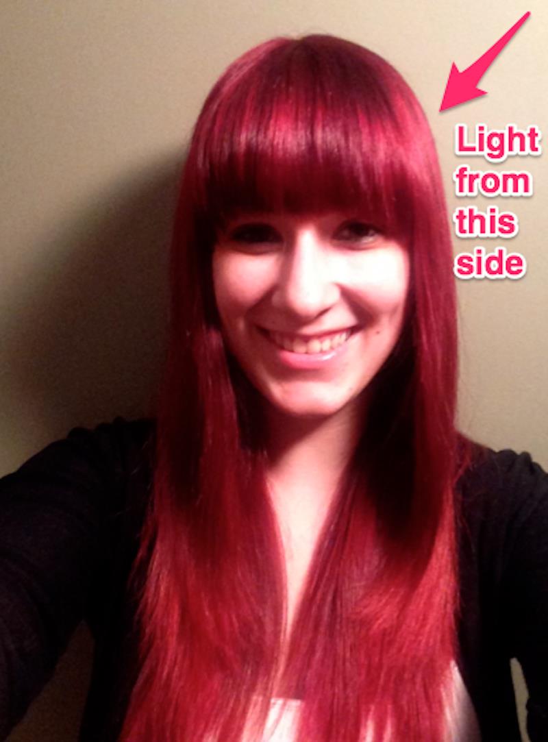 Hãy chú ý tới các điều kiện ánh sáng vì ánh sáng là một trong số những nhân tố quan trọng nhất quyết định chất lượng của một bức ảnh. Dưới đây là ví dụ về một bức ảnh “tự sướng” được chụp với ánh sáng chiếu trước mặt.