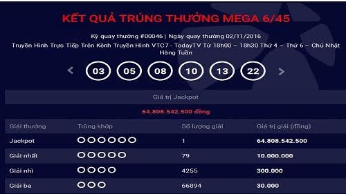 Tiếp đó, ngày 2/11, một người ở Đồng Nai cũng trúng giải đặc biệt Jackpot trị giá gần 65 tỷ đồng.
