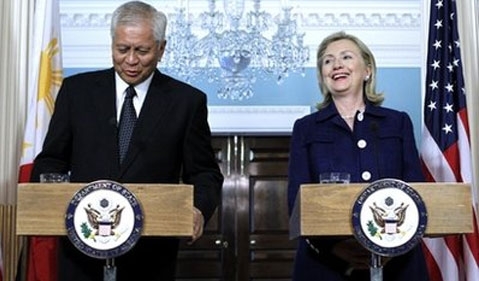 | Ngoại trưởng Philippines Albert del Rosario và Ngoại trưởng Mỹ Hillary Rodham Clinton Ảnh: AP |