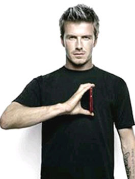 Danh thủ David Beckham là người mẫu cho điện thoại nhãn hiệu Motorola |