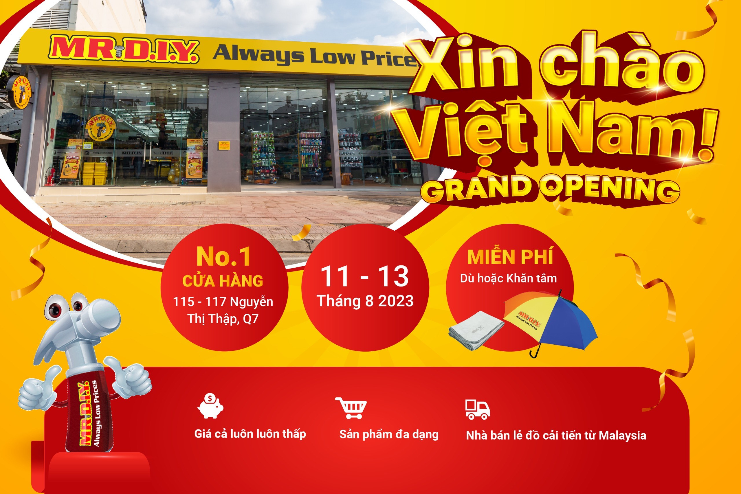 Nhân dịp khai trương cửa hàng đầu tiên, từ ngày 11 - 13/8/ 2023, khách hàng Việt Nam sẽ được trải nghiệm một phong cách mua sắm hoàn toàn mới cùng những ưu đãi hấp dẫn và quà tặng độc đáo từ MR.DIY.