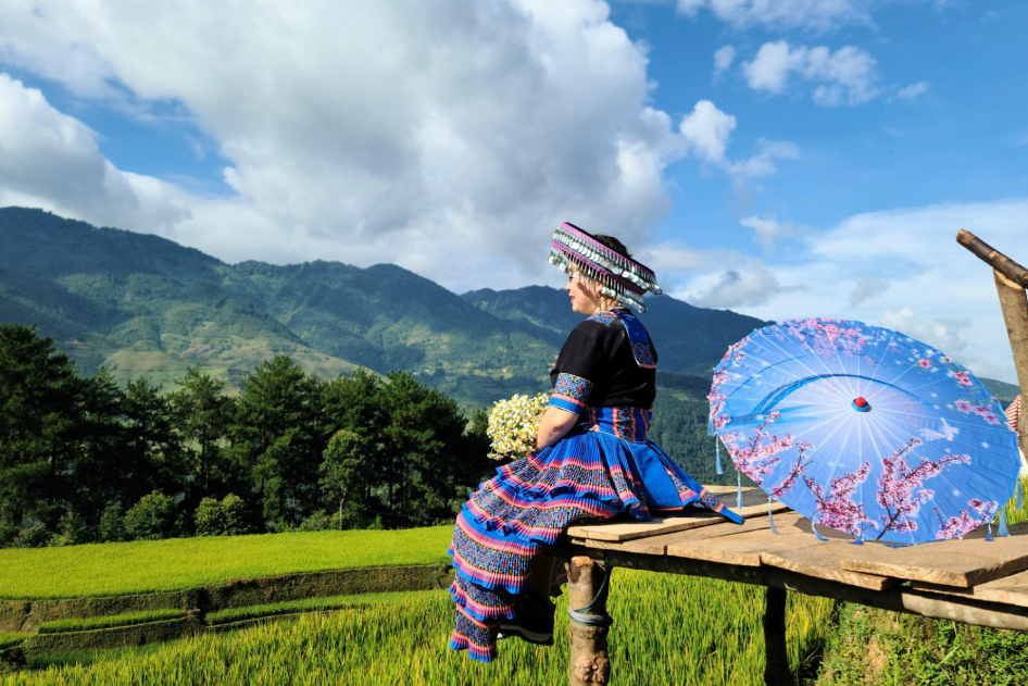 Gia đình chị Hờ Thị Dinh (xã La Pán Tẩn, huyện Mù Cang Chải) cũng thoát nghèo nhờ làm du lịch. Chị Dinh đã học hỏi cách làm du lịch trải nghiệm, xây dựng homestay để kinh doanh dịch vụ lưu trú từ năm 2022. Hiện tại đang là mùa cao điểm du lịch Mù Cang Chải nên lúc nào cơ sở của chị Dinh cũng kín khách.