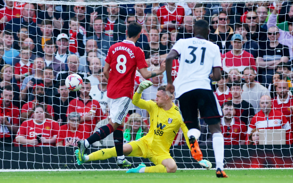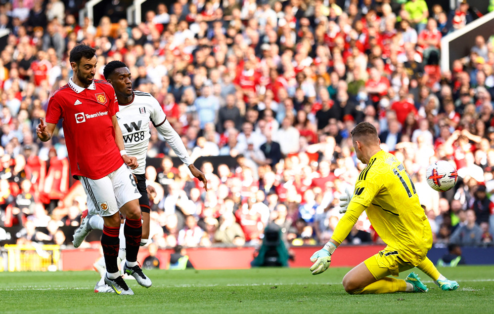 Malacia mồi bóng thuận lợi cho Garnacho đặt lòng góc hẹp dội xà ngang khung thành Fulham. Cơ hội quá đáng tiếc của tài năng trẻ Argentina.
