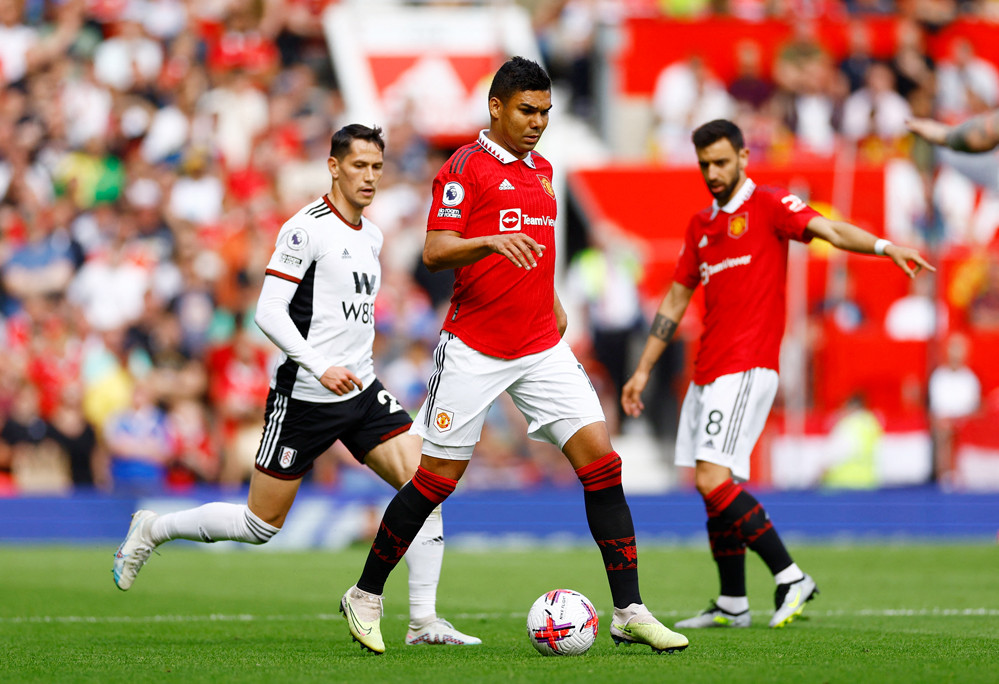 Fulham được hưởng phạt đền sau tình huống Casemiro phạm lỗi với Cairney trong vòng cấm.