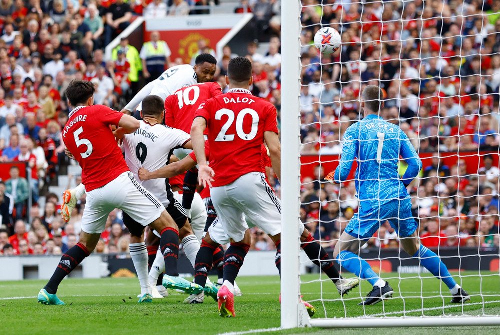Mitrovic sớm đe dọa khung thành MU nhưng cú đánh đầu đi hơi cao so với cầu môn.