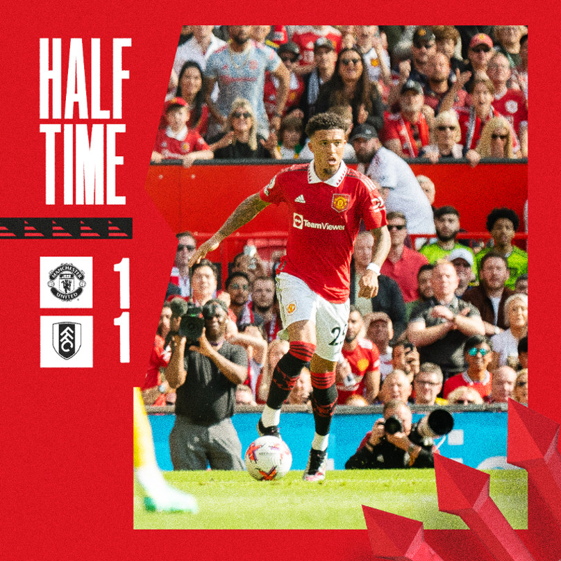 Bàn thắng (1-1, Jadon Sancho): Sau pha tả xung hữu đột của Fred trong vòng cấm, bóng đến chân Sancho ở tư thế thuận lợi. Tiền đạo người Anh vẩy má ngoài chân phải dễ dàng gỡ hòa 1-1.