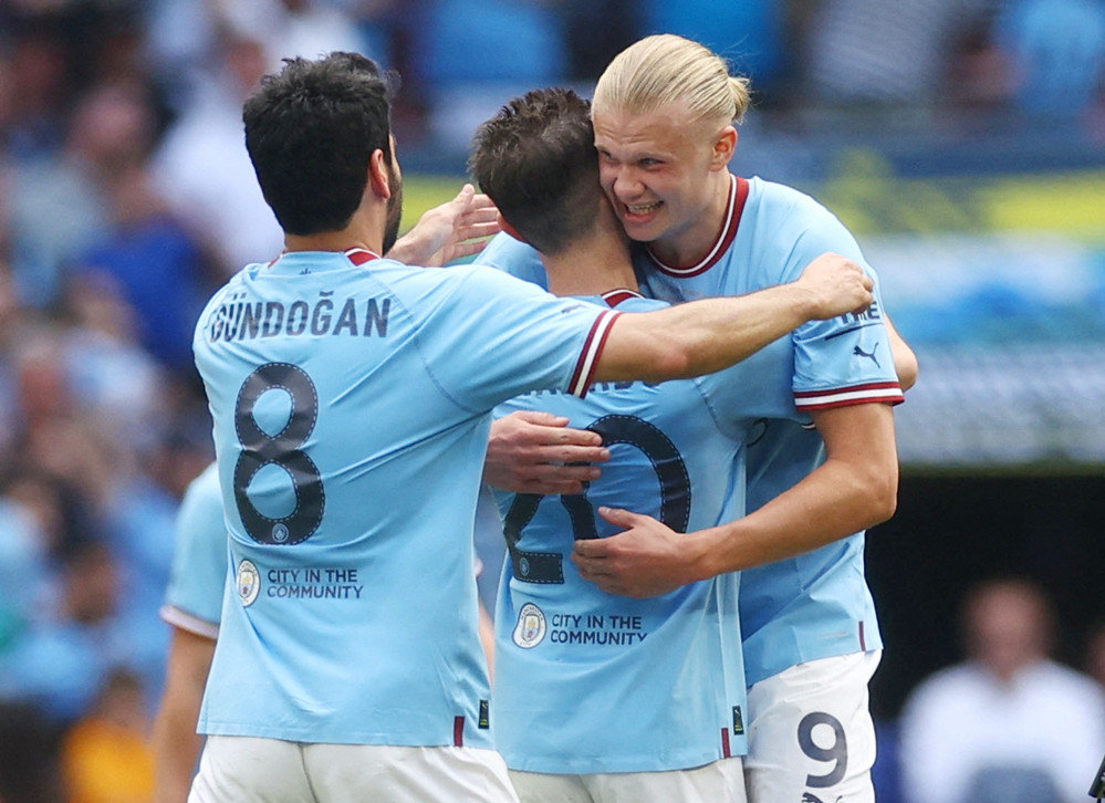 Man City: Ortega; Walker, Dias, Akanji; Stones, Rodri; Bernardo, De Bruyne (Foden 76'), Gundogan, Grealish (Ake 89'); Haaland.
