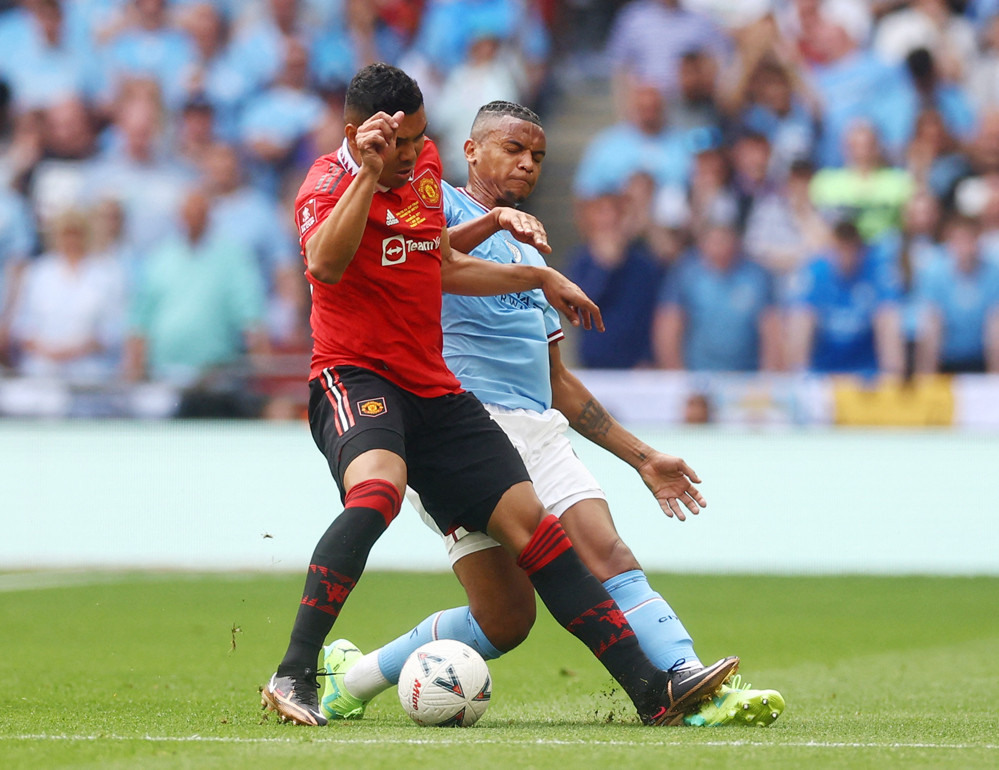 Casemiro vừa có pha vào bóng khá nguy hiểm với Akanji. May cho tiền vệ Brazil là anh không bị phạt thẻ.