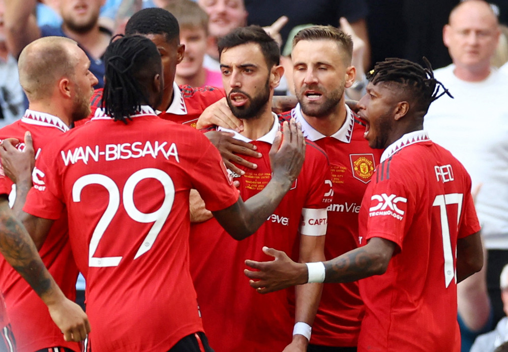MU: De Gea; Wan-Bissaka, Varane, Lindelof (McTominay 84'), Shaw; Fred, Casemiro, Eriksen (Garnacho 62'); Sancho (Weghorst 78'), Fernandes, Rashford.