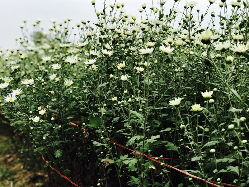 Cô Vân - một người trồng hoa ở Nhật Tân, cho biết, cúc họa mi trồng 6 tháng mới được cắt bán. Hoa được trồng theo hai phương pháp: xen canh dưới các gốc đào để tận dụng khoảng đất trống khi đào chưa vào nụ và trồng luống riêng.