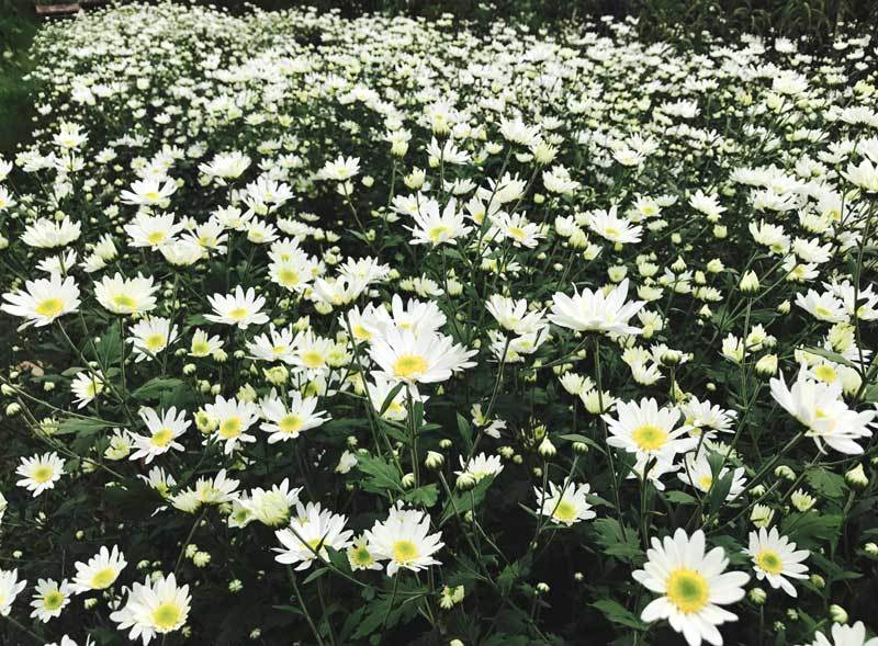 Vì thế, diện tích hoa cúc họa mi càng ngày càng được mở rộng. Và vào thời điểm này, ra cánh đồng hoa Nhật Tân sẽ thấy cúc họa mi tràn ngập, đua nhau bung nở trắng một vùng trời