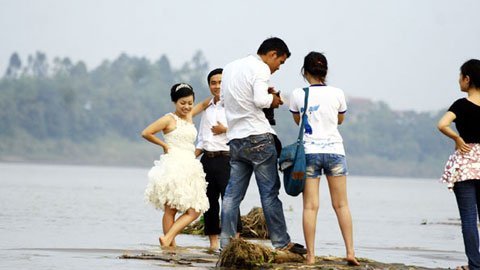 Cứ đến mùa cưới, cắc đôi uyên ương lại lũ lượt kéo về bãi đá sông Hồng để chụp ảnh với mong muốn có một bức hình thật ấn tượng. Nhưng đầng sau đó, họ có biết rằng cát có thể sụt bất cứ lúc nào, tính mạng của họ có thể bị hà bá lấy đi trong gang tấc.