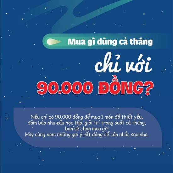 ictnews Nếu chỉ có 90.000 đồng để mua 1 món đồ thiết yếu, đảm bảo nhu cầu học tập, giải trí trong suốt cả tháng, bạn sẽ chọn mua gì? Hãy cùng xem những gợi ý rất đáng để cân nhắc sau nha.