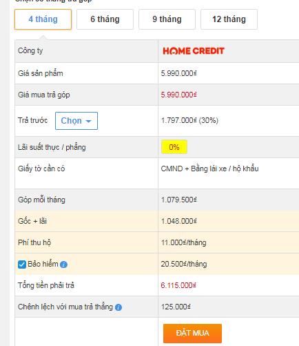 Tính ra, mua trả góp lãi suất 0% trong vòng 6 tháng, người dùng đã thiệt hơn so với việc mua trả trước tới hơn 6 triệu đồng, tương đương với mức - cao hơn nhiều mức lãi suất cho vay tín chấp mà các ngân hàng áp dụng hiện nay.