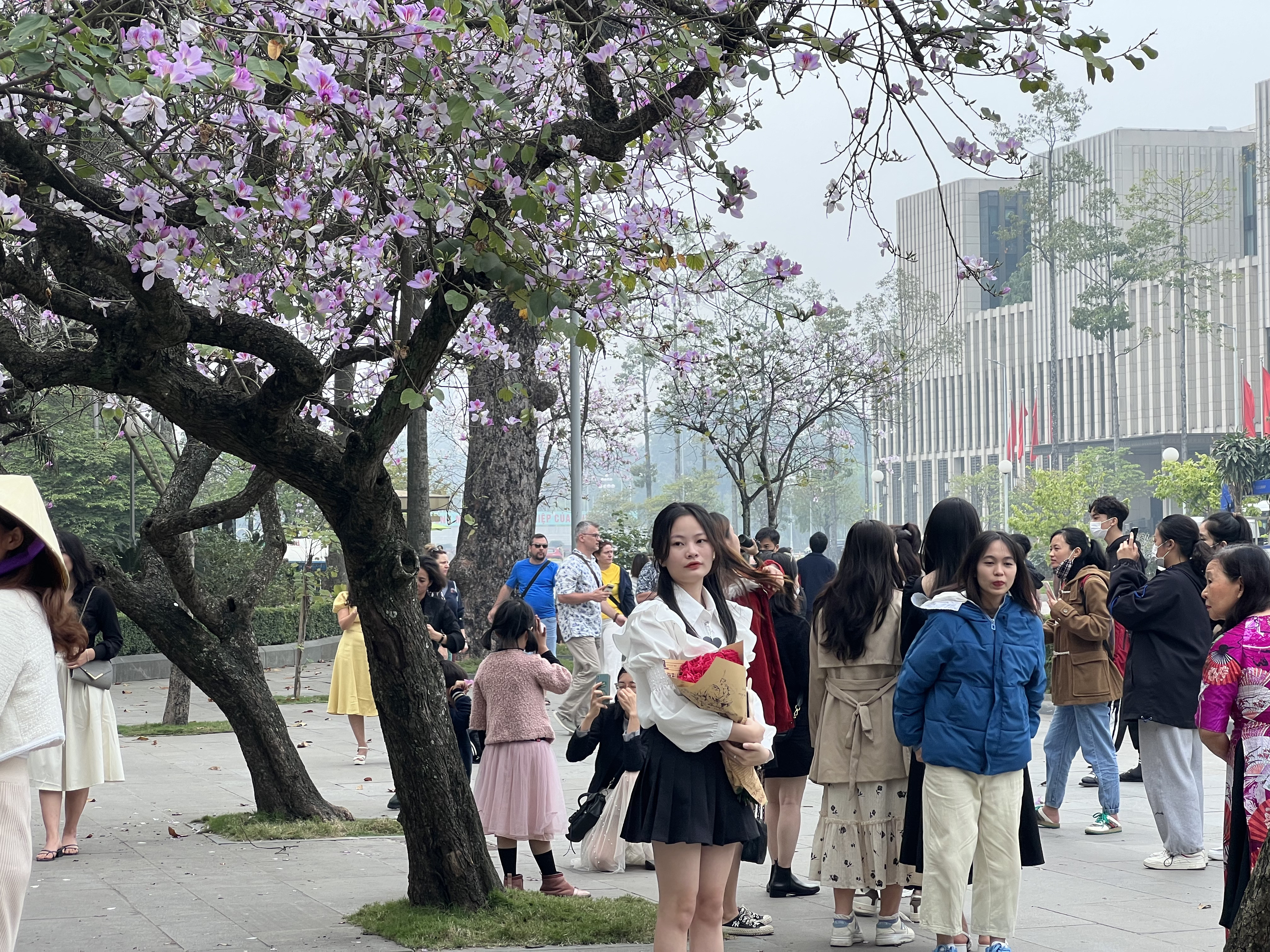 Cuối tháng 2, rất nhiều loại hoa đồng loạt bung nở trên khắp những con đường Hà Nội. Sắc tím nhạt của hoa ban, trắng tinh khôi hoa sưa hay vàng rực rỡ của hoa phong linh đã thu hút rất nhiều người xuống phố check-in, chụp ảnh.