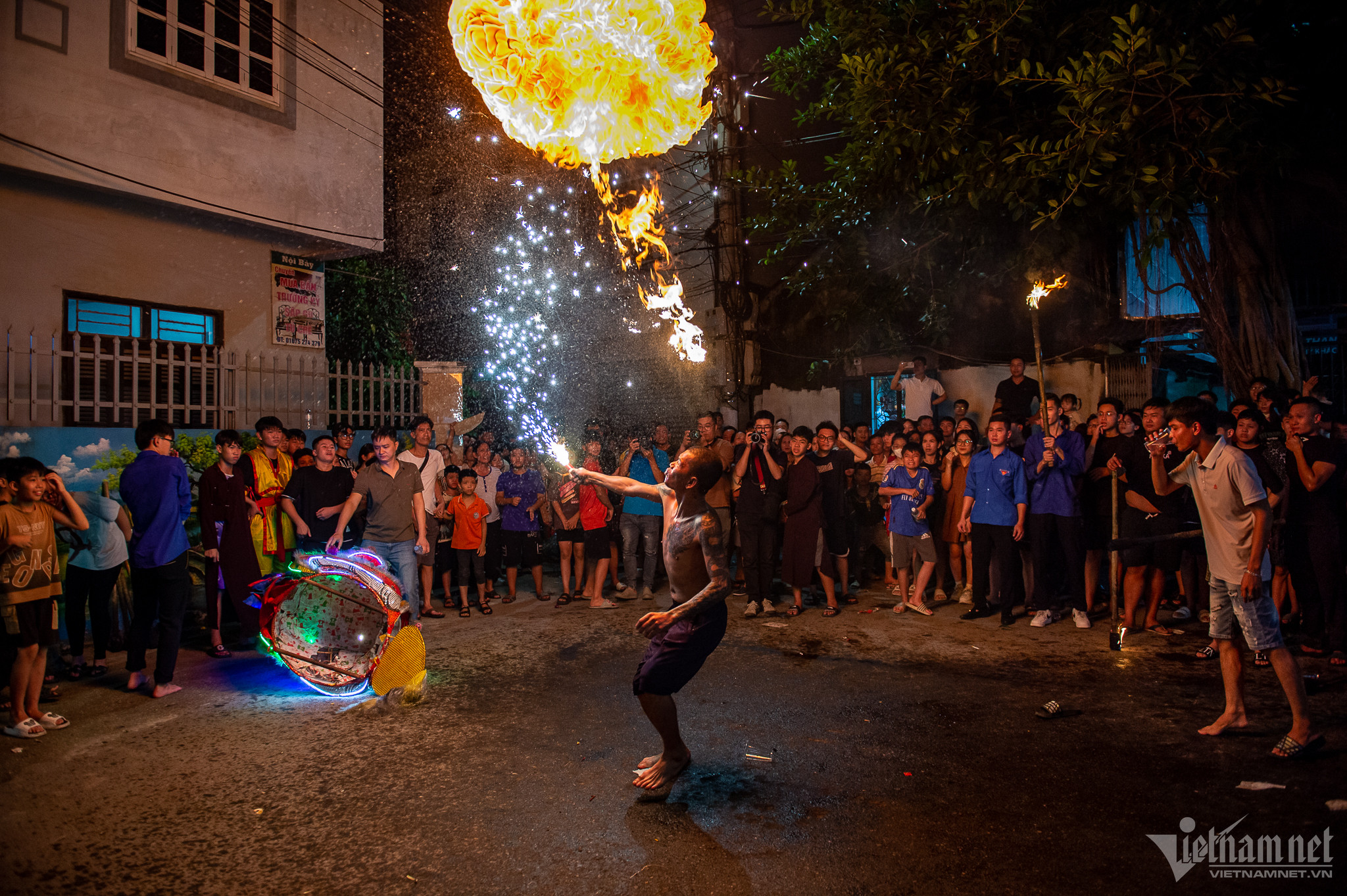 Những màn múa lân, thổi lửa mãn nhãn trên con đường làng đã trở thành một trong những hoạt động vui Tết Trung thu độc đáo của làng quê vùng ven đô.