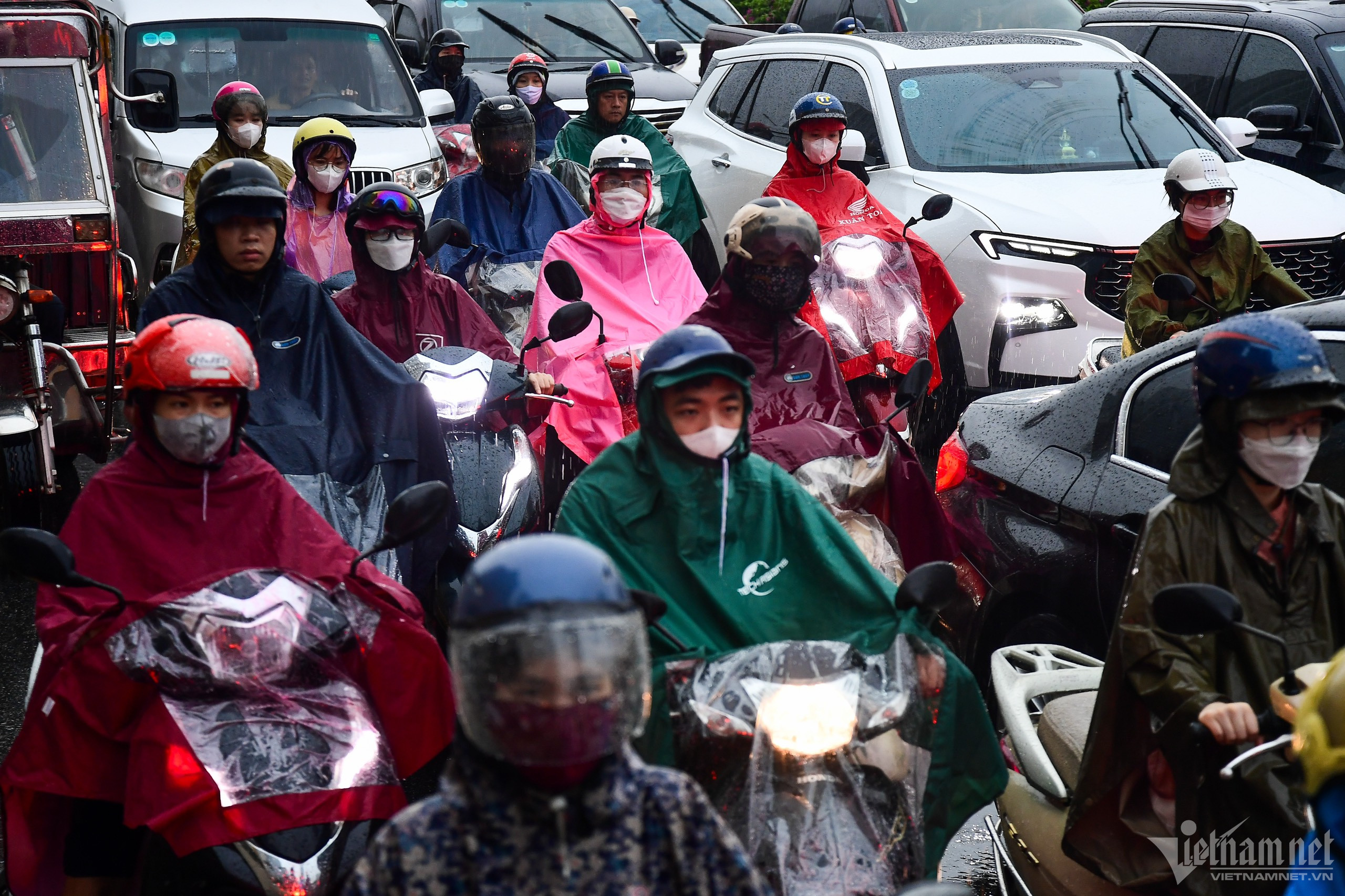 Ra đường vào thời điểm này là việc bất đắc dĩ, không ai muốn, nhưng hầu hết những người trên đường đến nơi làm việc vẫn phải "đối đầu".