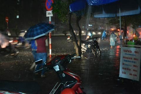 | Cơn mưa lớn bất ngờ đổ xuống từ 6h chiều 19/6. |