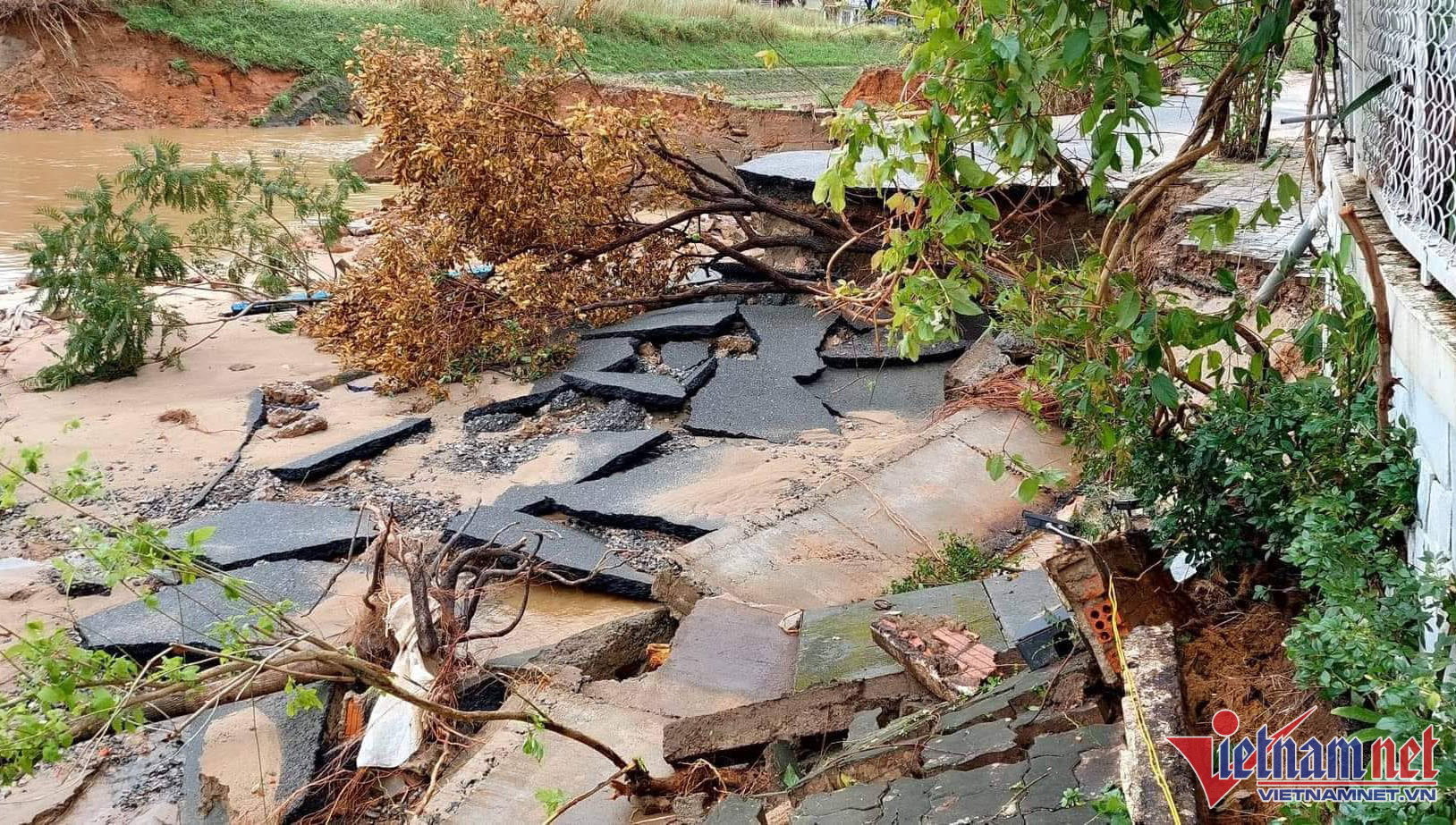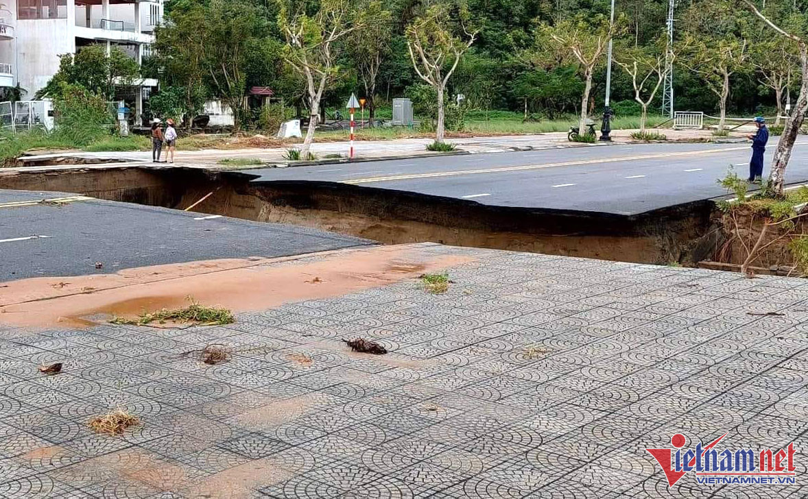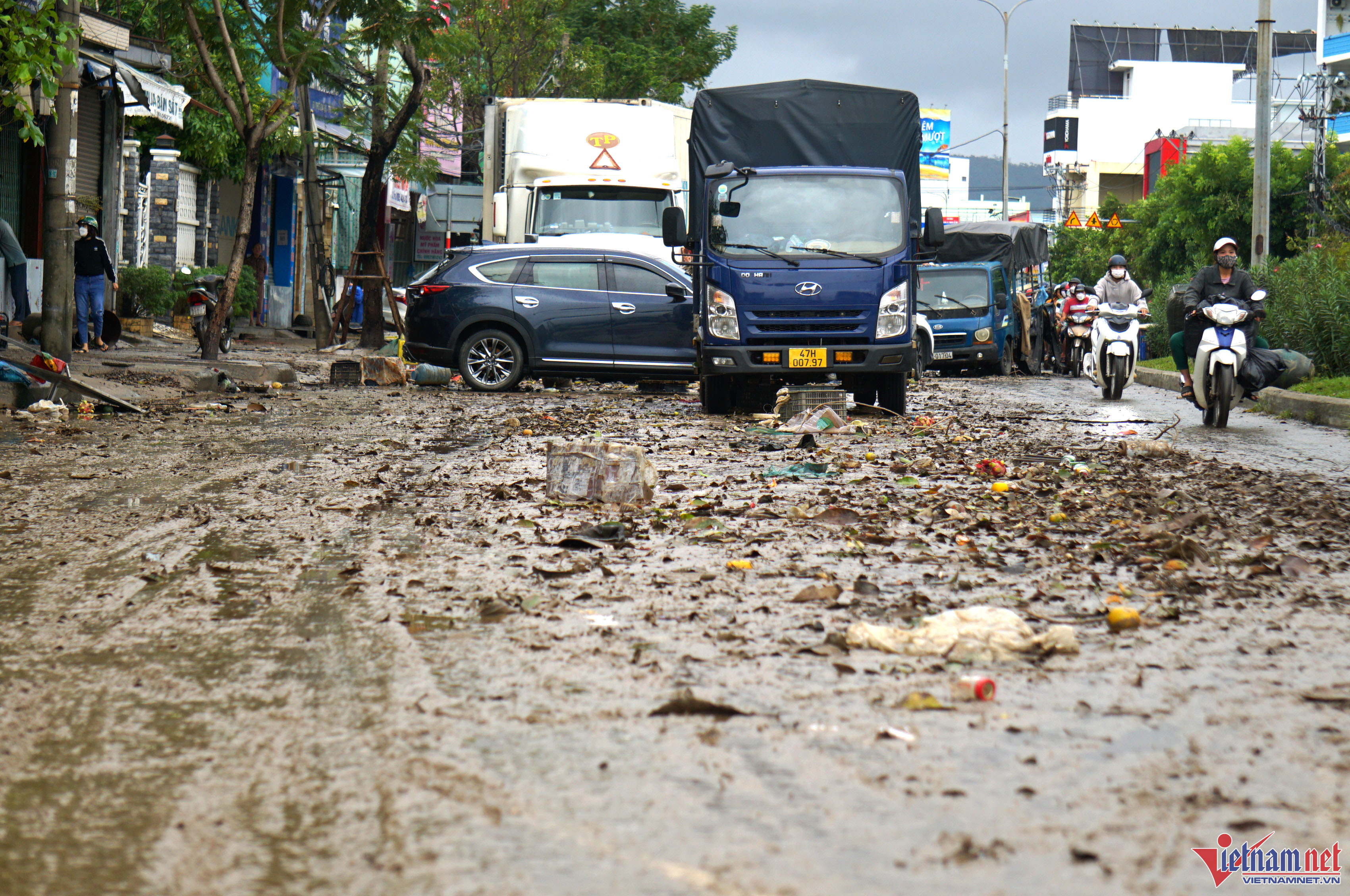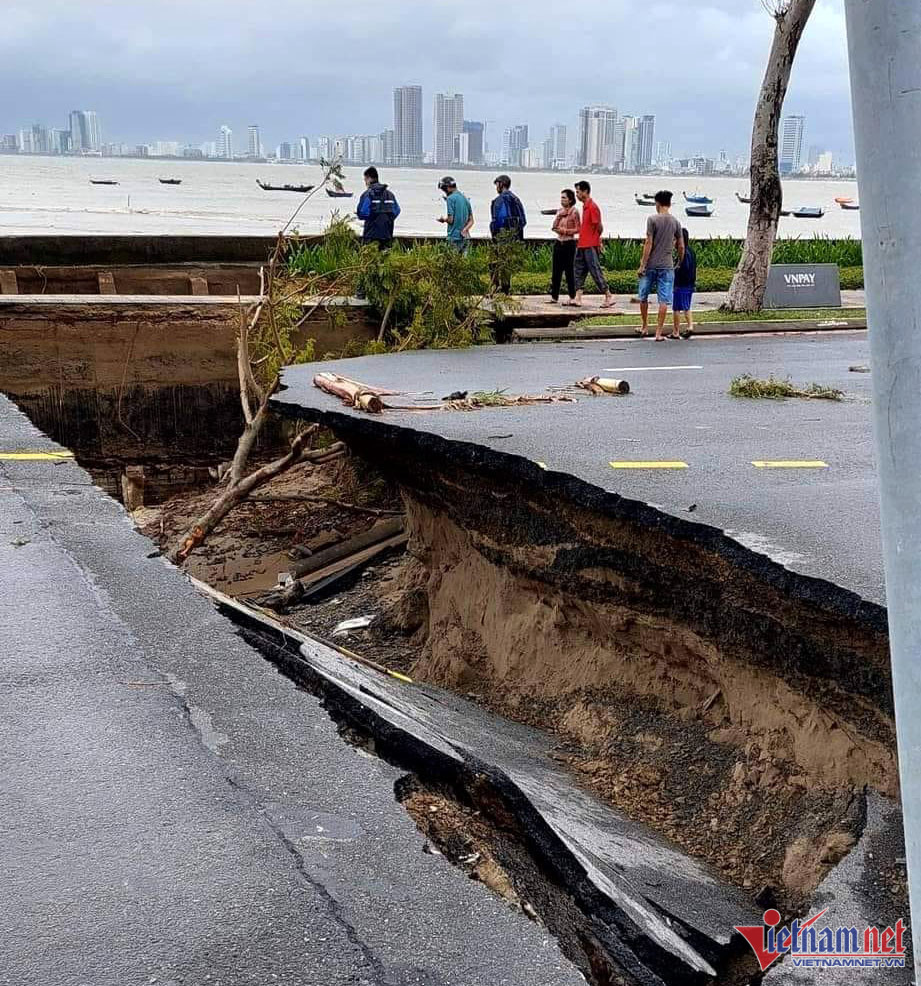 Sau mưa lụt, nhiều tuyến đường ở Đà Nẵng đọng bùn dày ảnh hưởng giao thông. Còn tuyến đường dẫn lên bán đảo Sơn Trà bị sụt lún.