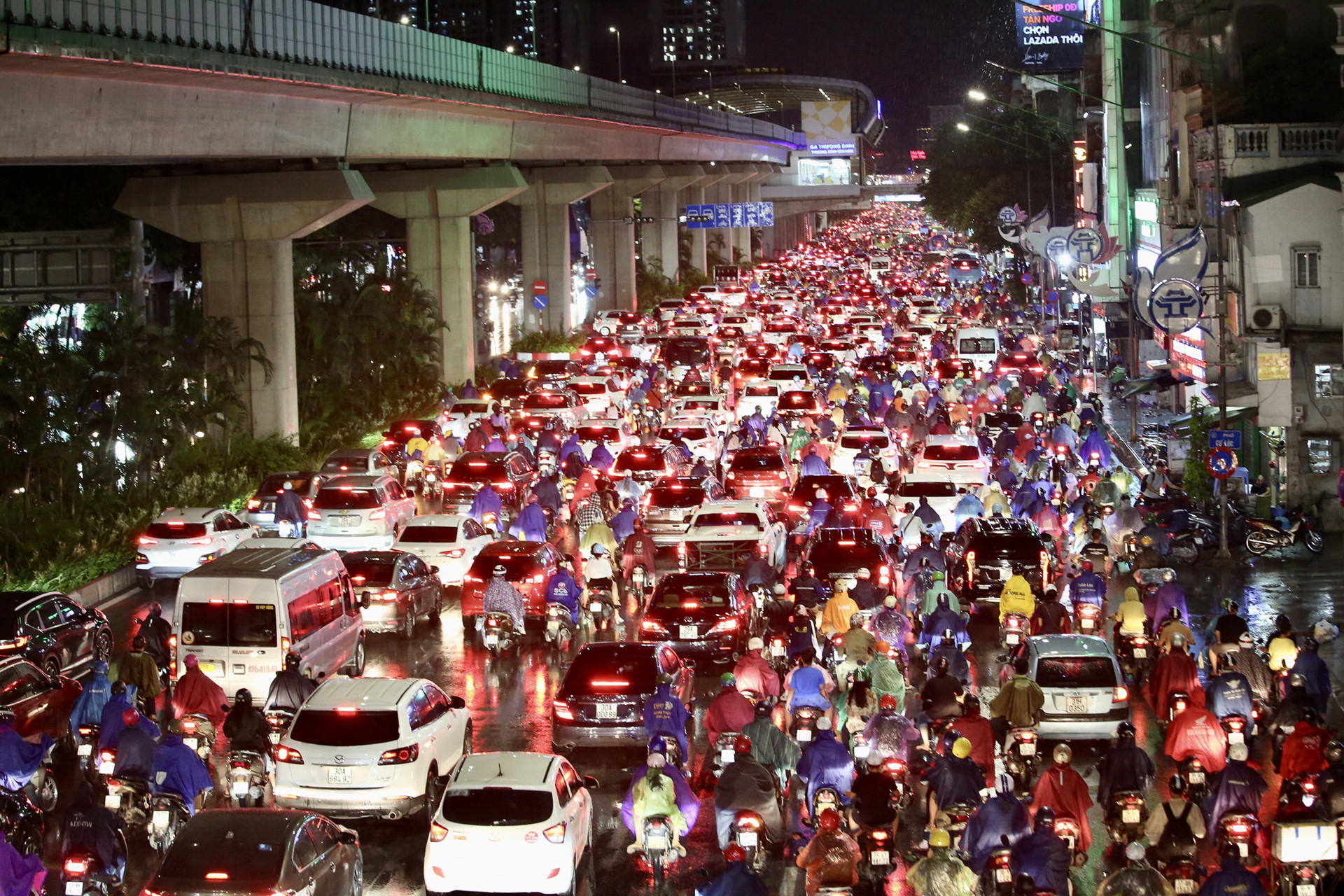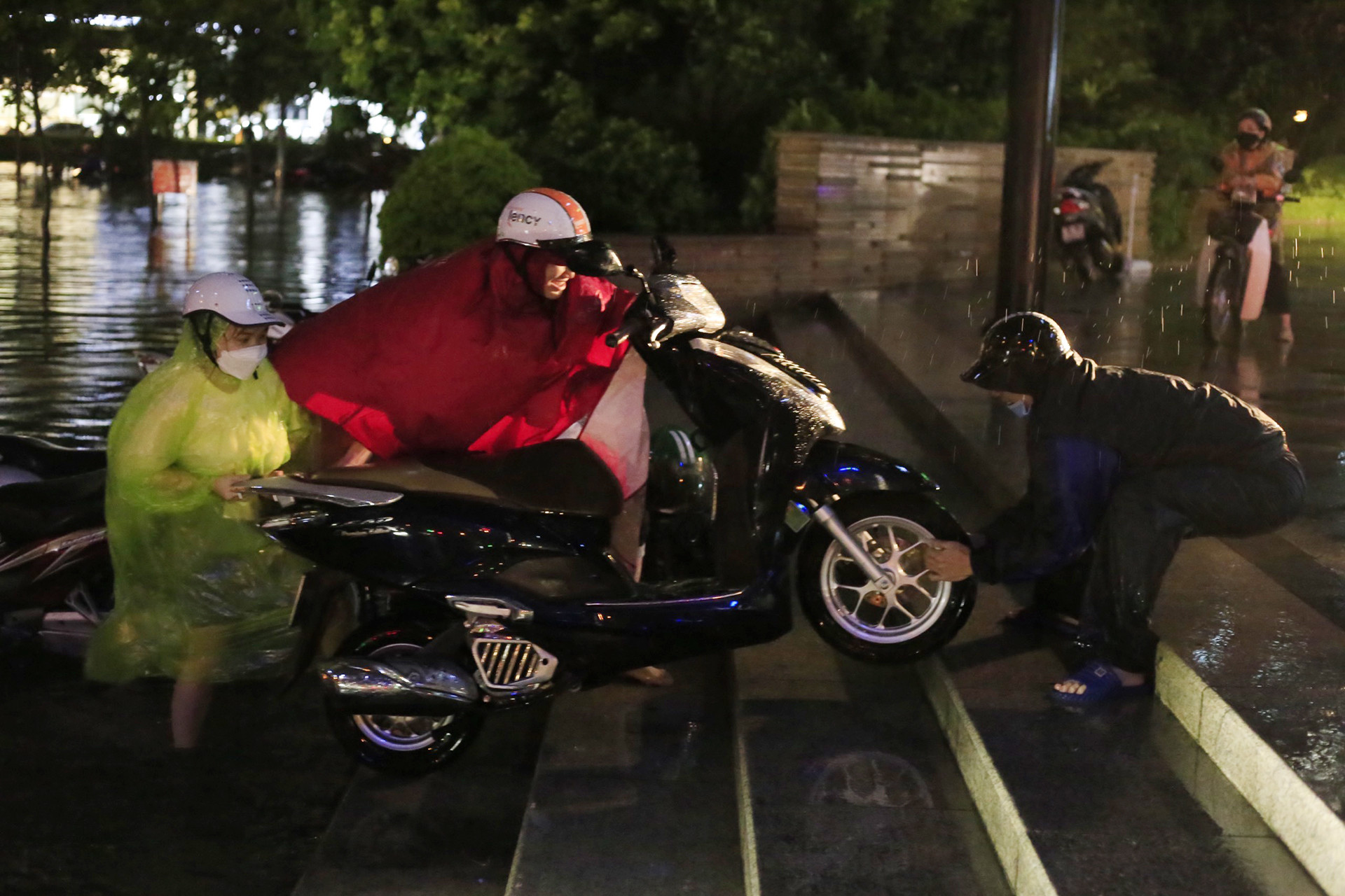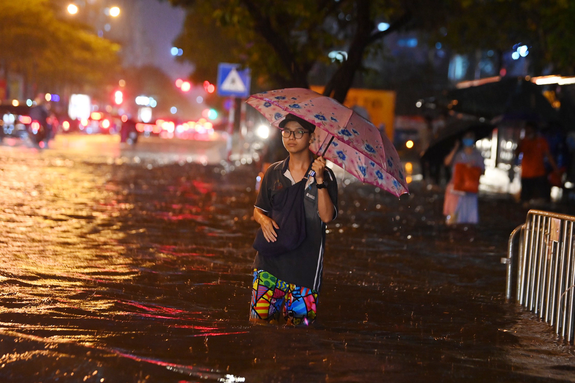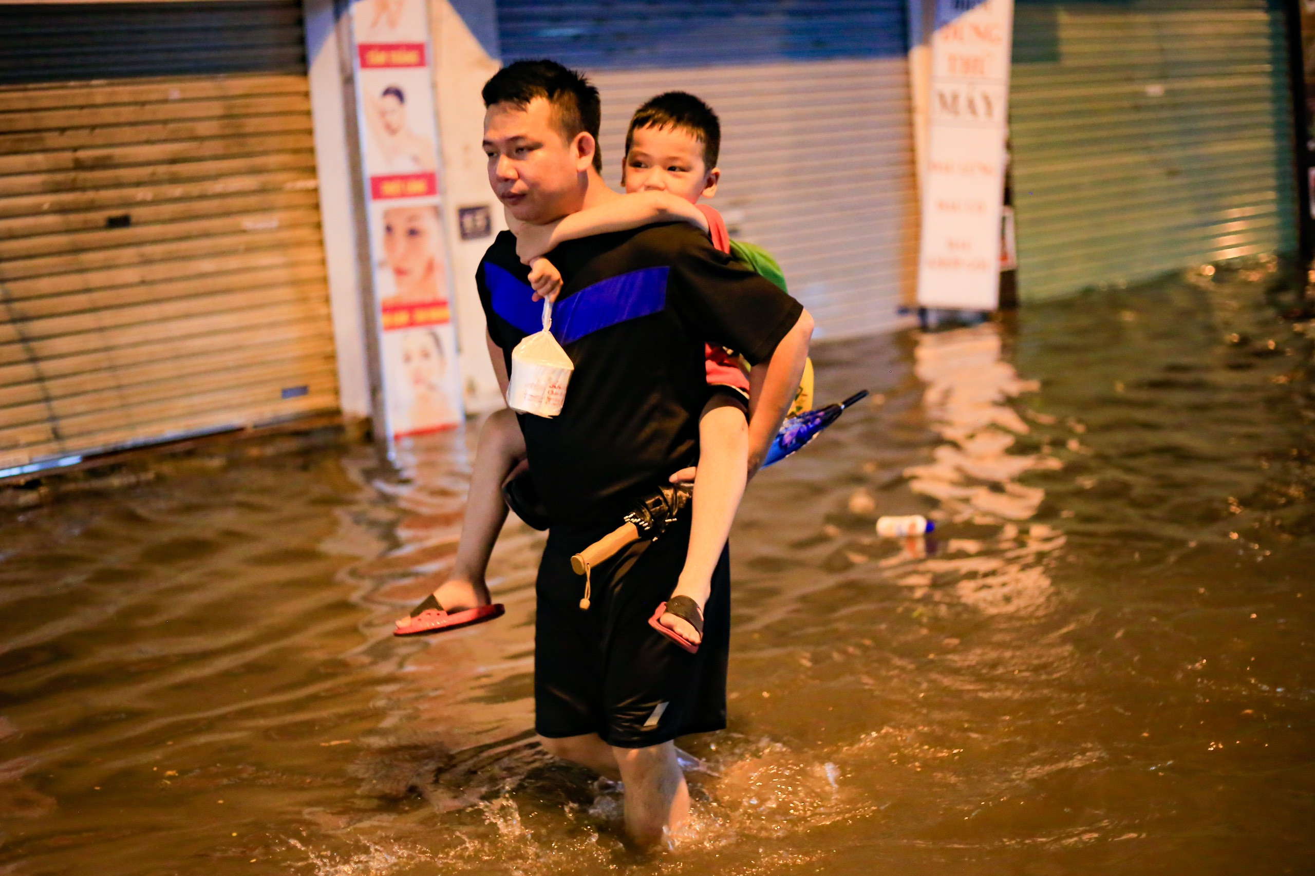 17h30 chiều 5/7, một trận mưa lớn trút xuống trung tâm thủ đô và nhiều khu vực lân cận khiến nhiều tuyến phố chìm trong nước. Người dân gặp khó khăn khi di chuyển từ nơi làm việc về nhà.