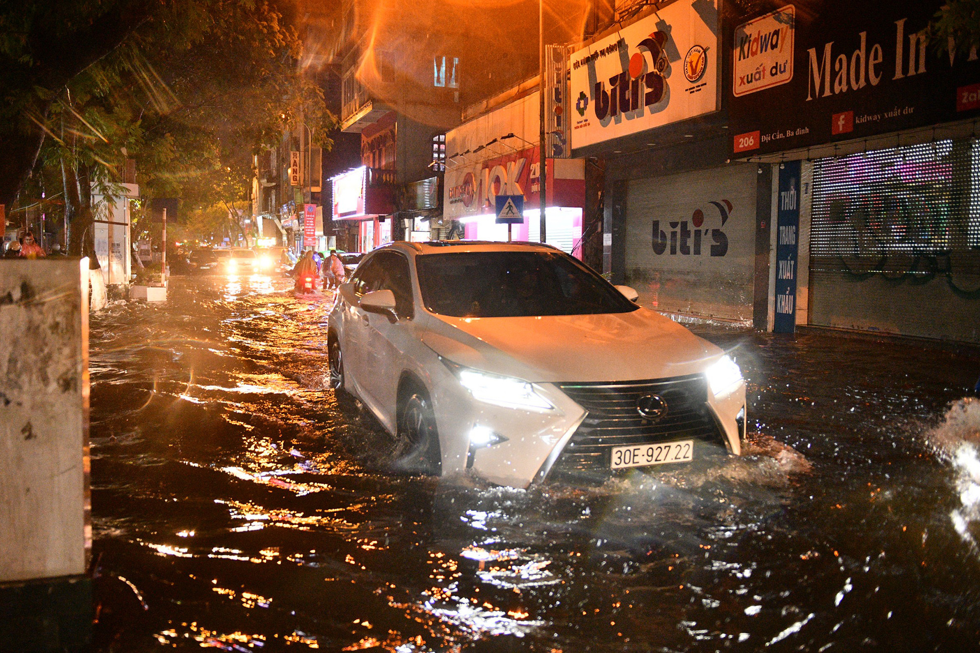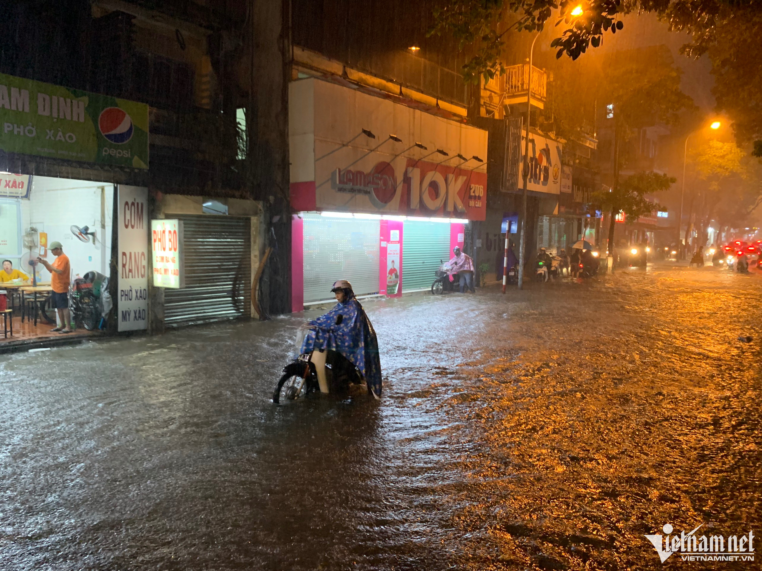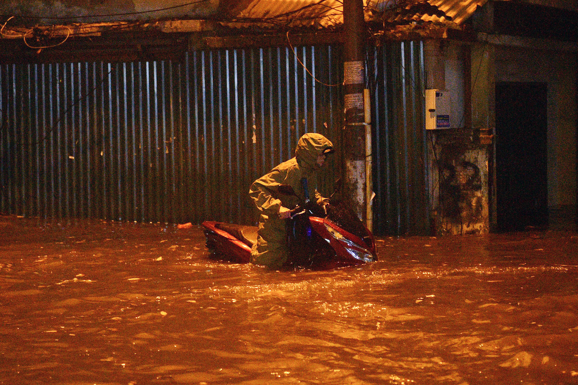 Một chiếc ôtô 7 chỗ ngồi phải dừng lại trên đường Đỗ Đức Dục (quận Nam Từ Liêm) ngay sau khi mưa được 30 phút. Ảnh: Tuấn Anh.Phố Trần Bình bị ngập sâu, người dân không thể đi xe máy vào, người đàn ông này phải lội nước vào ngõ để đón bé Mỹ Anh sau giờ tan học. Ảnh: Tuấn Anh. Một phụ nữ phải xuống đẩy xe qua đoạn ngập. Lúc này, nhiều người đang trên đường đi làm về. Ảnh: Tuấn Anh.Nơi ngập sâu nhất trên đường Đỗ Đức Dục khoảng 1 mét. Số liệu từ Công ty Thoát nước Hà Nội cho thấy chỉ trong vòng hơn 40 phút, lượng mưa ghi nhận được ở quận Cầu giấy đã lên tới gần 100mm (tại điểm đo 46 Hoa Bằng). Trong khi đó các quận Nam Từ Liêm, Bắc Từ Liêm, Ba Đình, Hà Đông cũng ghi nhận từ 50-80mm. Ảnh: Tuấn Anh.Cảnh tương tự trên phố Đội Cấn (quận Ba Đình) cùng thời điểm. Nhiều người đi xe máy dừng lại ở đầu đoạn ngập để theo dõi tình hình và không dám đi qua. Ảnh: Minh Hoàng.Trên đường đi qua khu vực tòa nhà Keangnam trên đường Dương Đình Nghệ, ô tô của một tài xế bị nước tràn vào trong. Khi tới vị trí an toàn, anh tìm cách hắt nước từ trong ra ngoài. Ảnh: Tuấn Anh.Nhiều tài xế phóng xe qua đoạn ngập dù không biết phía trước có những đoạn ngập khá sâu. Ảnh: Minh Hoàng.Cây đổ trên phố Đội Cấn. Cảnh tượng này xuất hiện tương tự ở các phố Thái Hà, Nguyễn Hoàng... Ảnh: Minh Hoàng.Tại ngã tư Lý Thường Kiệt - Phan Bội Châu (quận Hoàn Kiếm), may mắn nước ngập đoạn sâu nhất chỉ khoảng 50cm. Ảnh: Phạm Hải.Một chiếc ô tô gặp sự cố đã kịp thời được xe cứu hộ kéo đi. Ảnh: Phạm Hải.Công nhân thoát nước có mặt kịp thời khơi thông dòng chảy tại ngã tư Phan Bội Châu - Lý Thường Kiệt. Ảnh: Phạm Hải.Nhân viên văn phòng tại tòa nhà Keangnam đẩy xe lên trên sảnh để đi đường vòng thoát cảnh ngập gần đó. Ảnh: Tuấn Anh.Trục đường Liễu Giai - Văn Cao bị ùn tắc giao thông do nhiều đoạn bị ngập sâu. Ảnh: Minh Hoàng.Phố Kim Mã Thượng lúc 19h30, nước vẫn ngập sâu cả mét. Ảnh: Minh Hoàng.Tiểu thương tại một cửa hàng mặt phố Kim Mã Thượng không kịp cất đồ đạc lên cao. Ảnh: Minh Hoàng.19h30 dù mưa đã ngớt, đường Tây Sơn hướng đi Ngã Tư Sở vẫn bị ùn tắc giao thông kéo dài. Ảnh: Phạm Hải.Trên đường Phạm Hùng, nhóm sinh viên này cho biết đã đợi xe bus hơn 1 tiếng để về nhà nhưng chưa gặp. Ảnh: Tuấn Anh.Người dân ngồi chờ nước rút trên phố Hoa Bằng (quận Cầu Giấy). Họ cho biết trước đó vài chục phút khu vực này ngập sâu hơn nữa. Ảnh: Minh Hoàng. Phố Phạm Văn Bạch (quận Cầu Giấy) lúc 19h ngập khá sâu. Người đi xe máy di chuyển về phía sát mép vỉa hè để đảm bảo an toàn. Ảnh: Tuấn Anh.Thời điểm 19h20, khi mưa đã ngớt dần, tuyến phố này vẫn mênh mông nước. Ảnh: Tuấn Anh.“Sàn nhà tôi đã cơi lên 3 lần, giờ là cao hơn 70cm so với sàn cũ. Vậy mà khi mưa lớn, nước vẫn tràn cả vào trong. Tôi chỉ muốn mua lấy cái thuyền tôn để đi lại mùa này cho tiện”, bà Thuỷ (ngõ 90 phố Đội Cấn, Ba Đình) nói. Ảnh: Minh Hoàng.Đường Nguyễn Trãi bị ùn tắc kéo dài từ Ngã Tư Sở tới nút giao Khuất Duy Tiến lúc 19h50. Ảnh: Phạm Hải.