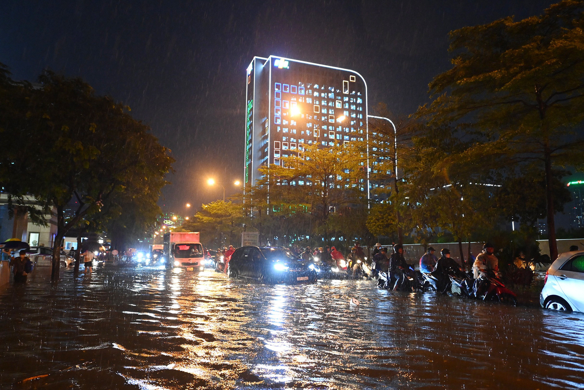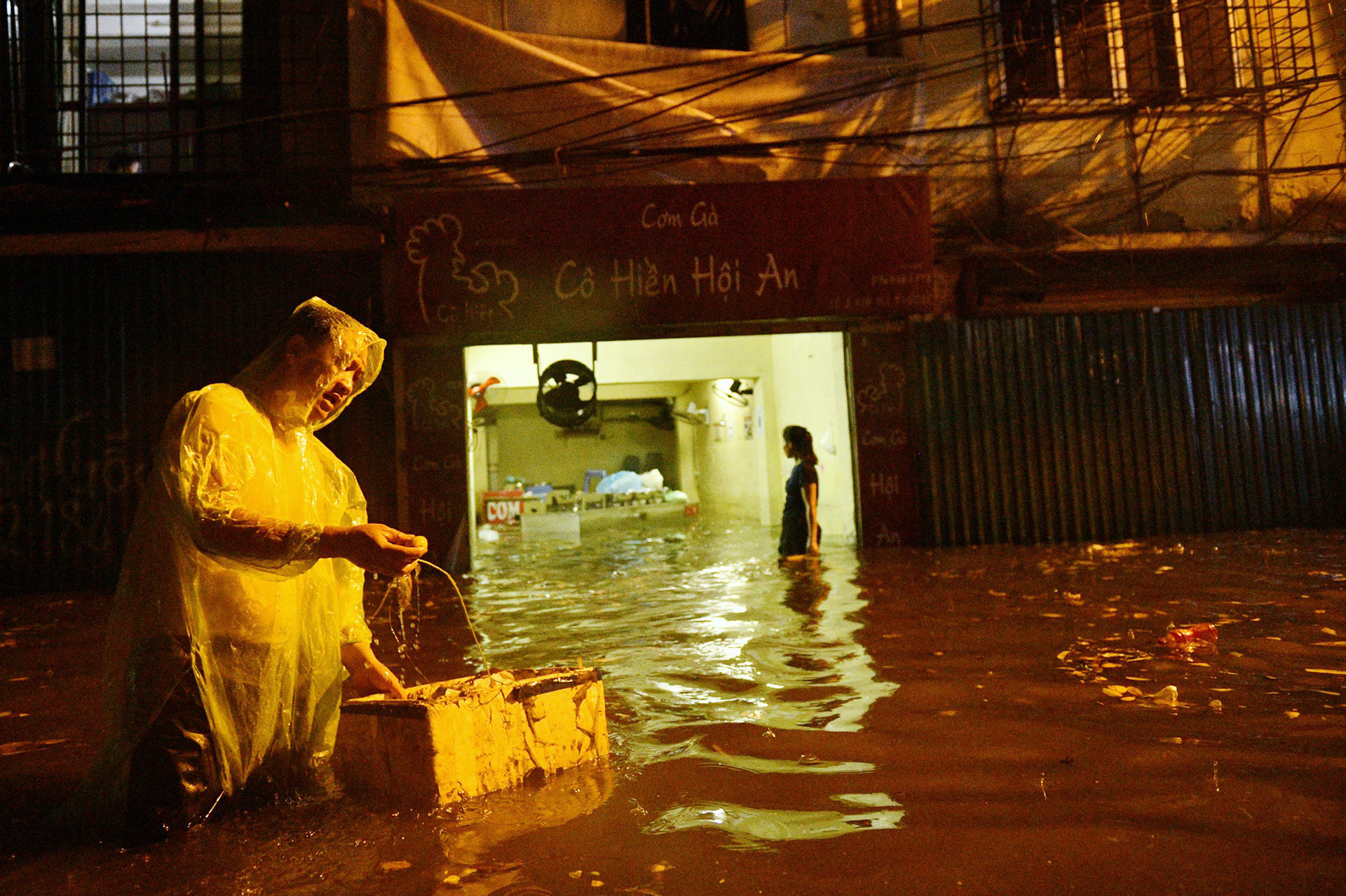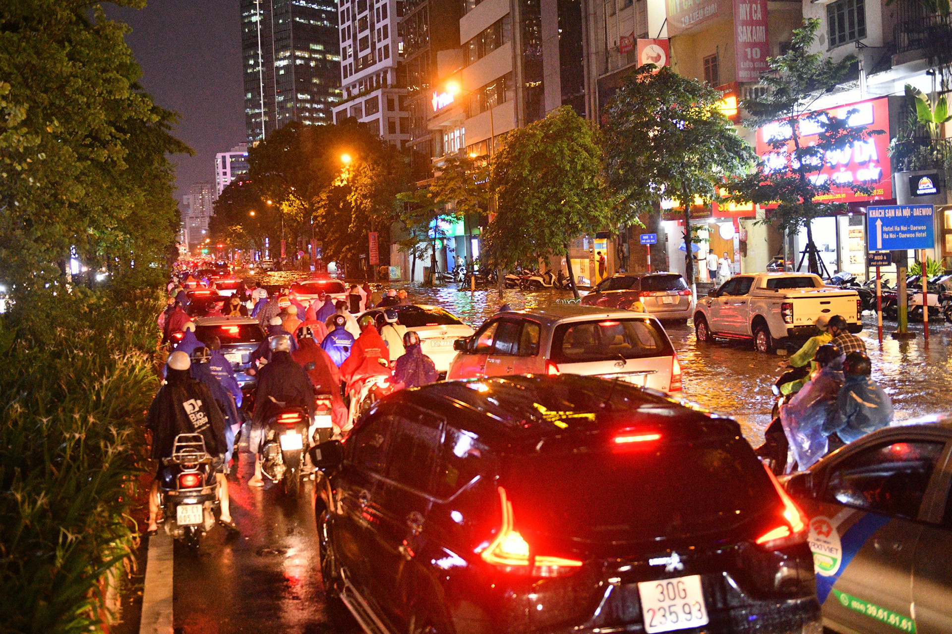 Một chiếc ôtô 7 chỗ ngồi phải dừng lại trên đường Đỗ Đức Dục (quận Nam Từ Liêm) ngay sau khi mưa được 30 phút. Ảnh: Tuấn Anh.Phố Trần Bình bị ngập sâu, người dân không thể đi xe máy vào, người đàn ông này phải lội nước vào ngõ để đón bé Mỹ Anh sau giờ tan học. Ảnh: Tuấn Anh. Một phụ nữ phải xuống đẩy xe qua đoạn ngập. Lúc này, nhiều người đang trên đường đi làm về. Ảnh: Tuấn Anh.Nơi ngập sâu nhất trên đường Đỗ Đức Dục khoảng 1 mét. Số liệu từ Công ty Thoát nước Hà Nội cho thấy chỉ trong vòng hơn 40 phút, lượng mưa ghi nhận được ở quận Cầu giấy đã lên tới gần 100mm (tại điểm đo 46 Hoa Bằng). Trong khi đó các quận Nam Từ Liêm, Bắc Từ Liêm, Ba Đình, Hà Đông cũng ghi nhận từ 50-80mm. Ảnh: Tuấn Anh.Cảnh tương tự trên phố Đội Cấn (quận Ba Đình) cùng thời điểm. Nhiều người đi xe máy dừng lại ở đầu đoạn ngập để theo dõi tình hình và không dám đi qua. Ảnh: Minh Hoàng.Trên đường đi qua khu vực tòa nhà Keangnam trên đường Dương Đình Nghệ, ô tô của một tài xế bị nước tràn vào trong. Khi tới vị trí an toàn, anh tìm cách hắt nước từ trong ra ngoài. Ảnh: Tuấn Anh.Nhiều tài xế phóng xe qua đoạn ngập dù không biết phía trước có những đoạn ngập khá sâu. Ảnh: Minh Hoàng.Cây đổ trên phố Đội Cấn. Cảnh tượng này xuất hiện tương tự ở các phố Thái Hà, Nguyễn Hoàng... Ảnh: Minh Hoàng.Tại ngã tư Lý Thường Kiệt - Phan Bội Châu (quận Hoàn Kiếm), may mắn nước ngập đoạn sâu nhất chỉ khoảng 50cm. Ảnh: Phạm Hải.Một chiếc ô tô gặp sự cố đã kịp thời được xe cứu hộ kéo đi. Ảnh: Phạm Hải.Công nhân thoát nước có mặt kịp thời khơi thông dòng chảy tại ngã tư Phan Bội Châu - Lý Thường Kiệt. Ảnh: Phạm Hải.Nhân viên văn phòng tại tòa nhà Keangnam đẩy xe lên trên sảnh để đi đường vòng thoát cảnh ngập gần đó. Ảnh: Tuấn Anh.Trục đường Liễu Giai - Văn Cao bị ùn tắc giao thông do nhiều đoạn bị ngập sâu. Ảnh: Minh Hoàng.Phố Kim Mã Thượng lúc 19h30, nước vẫn ngập sâu cả mét. Ảnh: Minh Hoàng.Tiểu thương tại một cửa hàng mặt phố Kim Mã Thượng không kịp cất đồ đạc lên cao. Ảnh: Minh Hoàng.19h30 dù mưa đã ngớt, đường Tây Sơn hướng đi Ngã Tư Sở vẫn bị ùn tắc giao thông kéo dài. Ảnh: Phạm Hải.Trên đường Phạm Hùng, nhóm sinh viên này cho biết đã đợi xe bus hơn 1 tiếng để về nhà nhưng chưa gặp. Ảnh: Tuấn Anh.Người dân ngồi chờ nước rút trên phố Hoa Bằng (quận Cầu Giấy). Họ cho biết trước đó vài chục phút khu vực này ngập sâu hơn nữa. Ảnh: Minh Hoàng. Phố Phạm Văn Bạch (quận Cầu Giấy) lúc 19h ngập khá sâu. Người đi xe máy di chuyển về phía sát mép vỉa hè để đảm bảo an toàn. Ảnh: Tuấn Anh.Thời điểm 19h20, khi mưa đã ngớt dần, tuyến phố này vẫn mênh mông nước. Ảnh: Tuấn Anh.“Sàn nhà tôi đã cơi lên 3 lần, giờ là cao hơn 70cm so với sàn cũ. Vậy mà khi mưa lớn, nước vẫn tràn cả vào trong. Tôi chỉ muốn mua lấy cái thuyền tôn để đi lại mùa này cho tiện”, bà Thuỷ (ngõ 90 phố Đội Cấn, Ba Đình) nói. Ảnh: Minh Hoàng.Đường Nguyễn Trãi bị ùn tắc kéo dài từ Ngã Tư Sở tới nút giao Khuất Duy Tiến lúc 19h50. Ảnh: Phạm Hải.