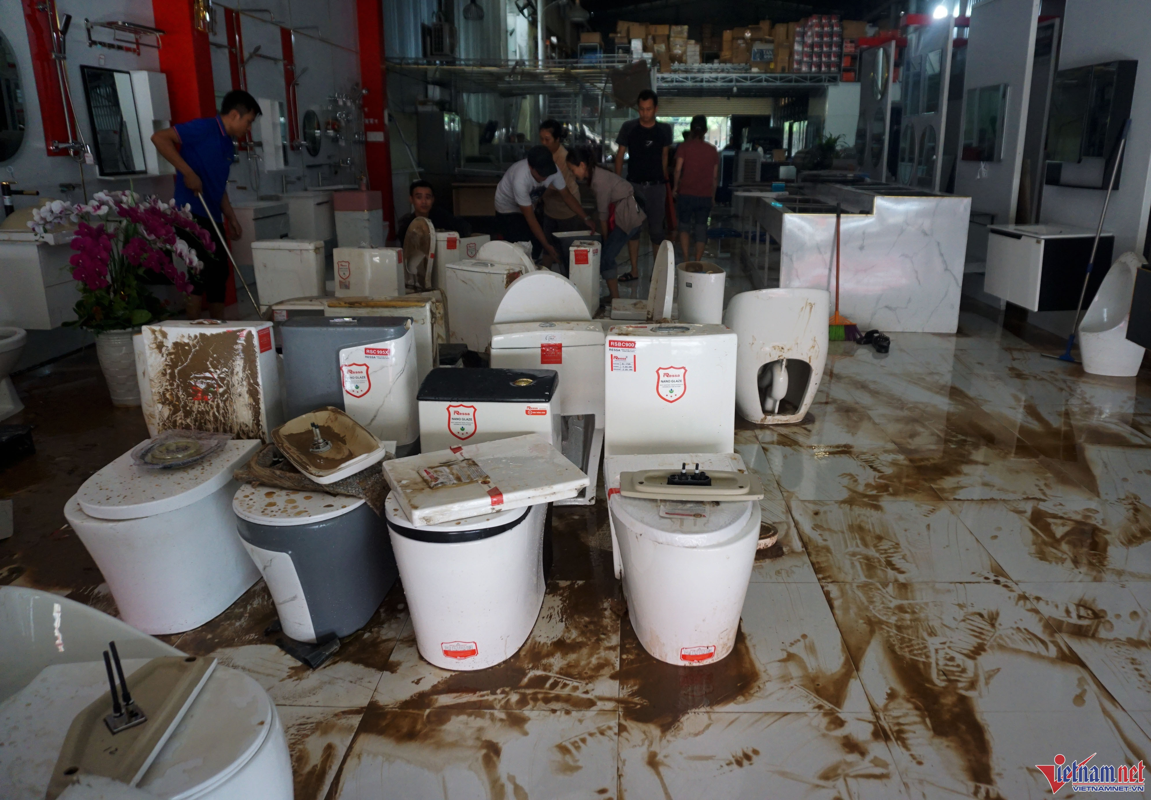 Từ sáng 15/10, ngay sau khi nước rút, người dân TP Đà Nẵng khẩn trương dọn dẹp bùn nonTrận lụt lịch sử tối 14/10 khiến nhiều nhà dân bị ngập sâu, nước nhấn chìm nhiều tài sảnChỉ tay lên điểm nước lụt dâng, ông Sơn (sống trên đường Tôn Đức Thắng, quận Liên Chiểu) cho biết: "Đây là lần đầu tiên tôi chứng kiến Đà Nẵng ngập sâu như thế. Tối qua, nước tràn vào nhà hơn 1m khiến nhiều máy móc bị hư hỏng".Không chỉ nhà dân, nhiều cửa hàng kinh doanh cũng chịu thiệt hại nặng sau trận lụt nàyTại một cửa hàng điện máy trên đường Tôn Đức Thắng (quận Liên Chiểu) nước ngập sâu làm hư hỏng nhiều thiết bị máy mócNhiều máy giặt bị ngâm nước hư hỏng