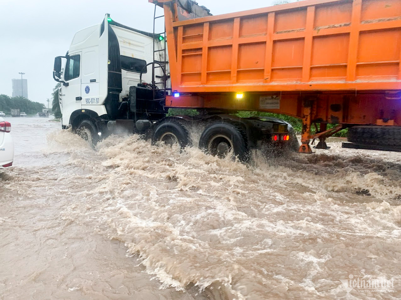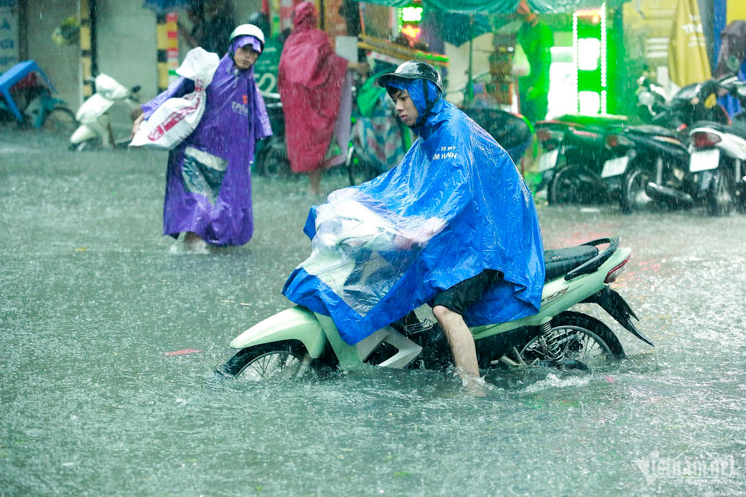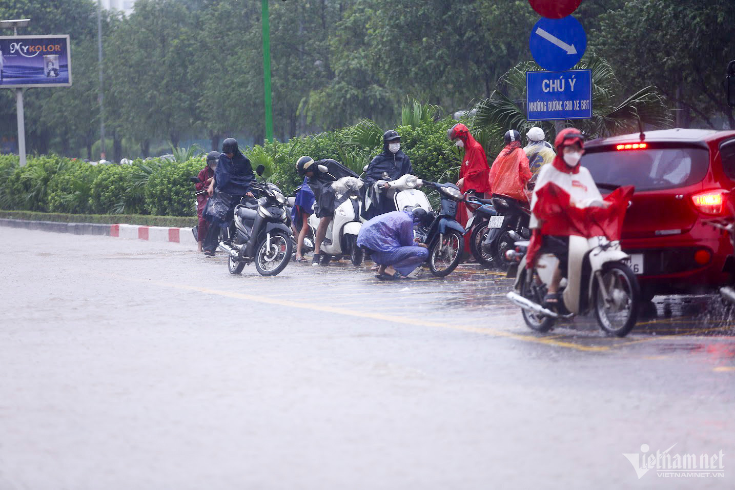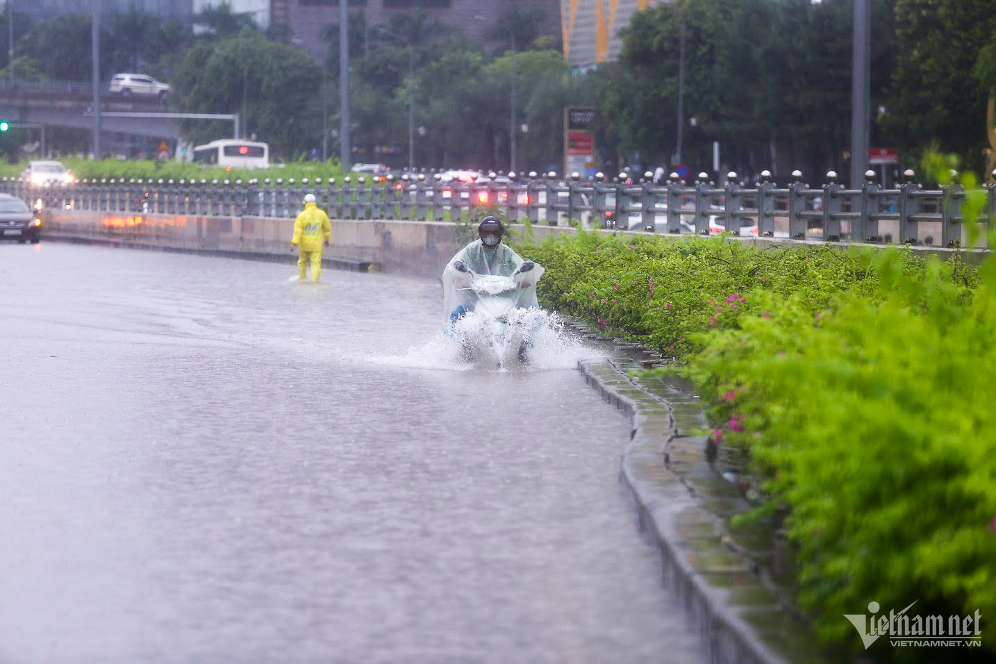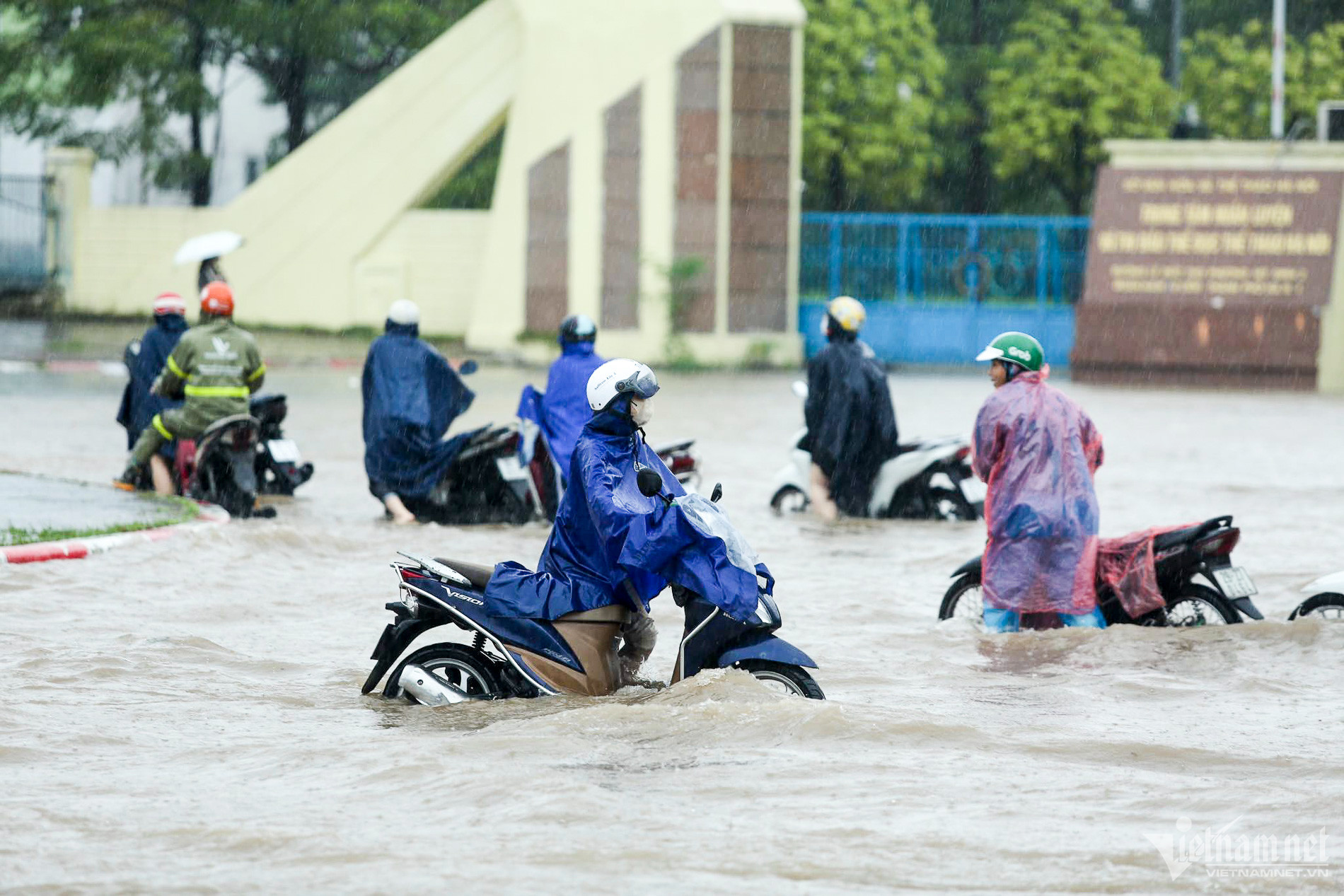 Đến hơn 10h, đường Nguyễn Trãi đoạn qua Trường Đại học Khoa học và xã hội nhân văn vẫn ngập sâu. Mức ngập sâu nhất tại đây đến 0,2m khiến phương tiện di chuyển khó khăn.Nhiều người đã dừng lại không tiếp tục di chuyển qua đoạn ngập để đảm bảo an toànMột số khác đi xe máy ngược chiều khiến tình hình giao thông hỗn loạnĐường Nguyễn Xiển ngập sâu, phương tiện không thể đi lạiNhiều tuyến phố, cửa ngõ Thủ đô như Tố Hữu, Trần Duy Hưng, Đại lộ Thăng Long, Lê Quang Đạo... đều "chìm" trong nước. Giao thông tê liệt, ùn tắc kéo dài, các phương tiện chỉ có thể "chôn chân" tại chỗ.Trên đường Lê Quang Đạo, nước ngập sâu khoảng 50cm khiến các phương tiện khó di chuyển qua.Xe máy phải dắt qua các điểm ngập.Đường Thiên Hiền (Mỹ Đình) cũng ngập sâu, khiến nhiều xe chết máy.Nhiều tuyến phố nước ngập quá nửa bánh xe.Đường Trần Duy Hưng cũng rơi vào tình trạng tương tự.Nhiều xe máy "chết đuối" sau khi bơi qua "biển" nước.Tuyến đường Tố Hữu ngập sâuGhi nhận tại Đại lộ Thăng Long Nước ngập gần lút bánh xe.Người dân tát nước ra khỏi nhà.