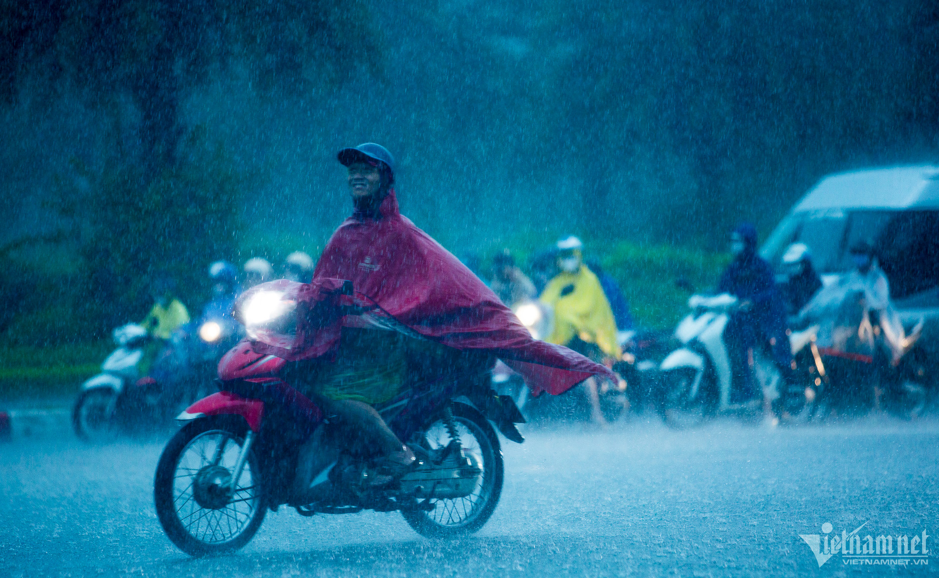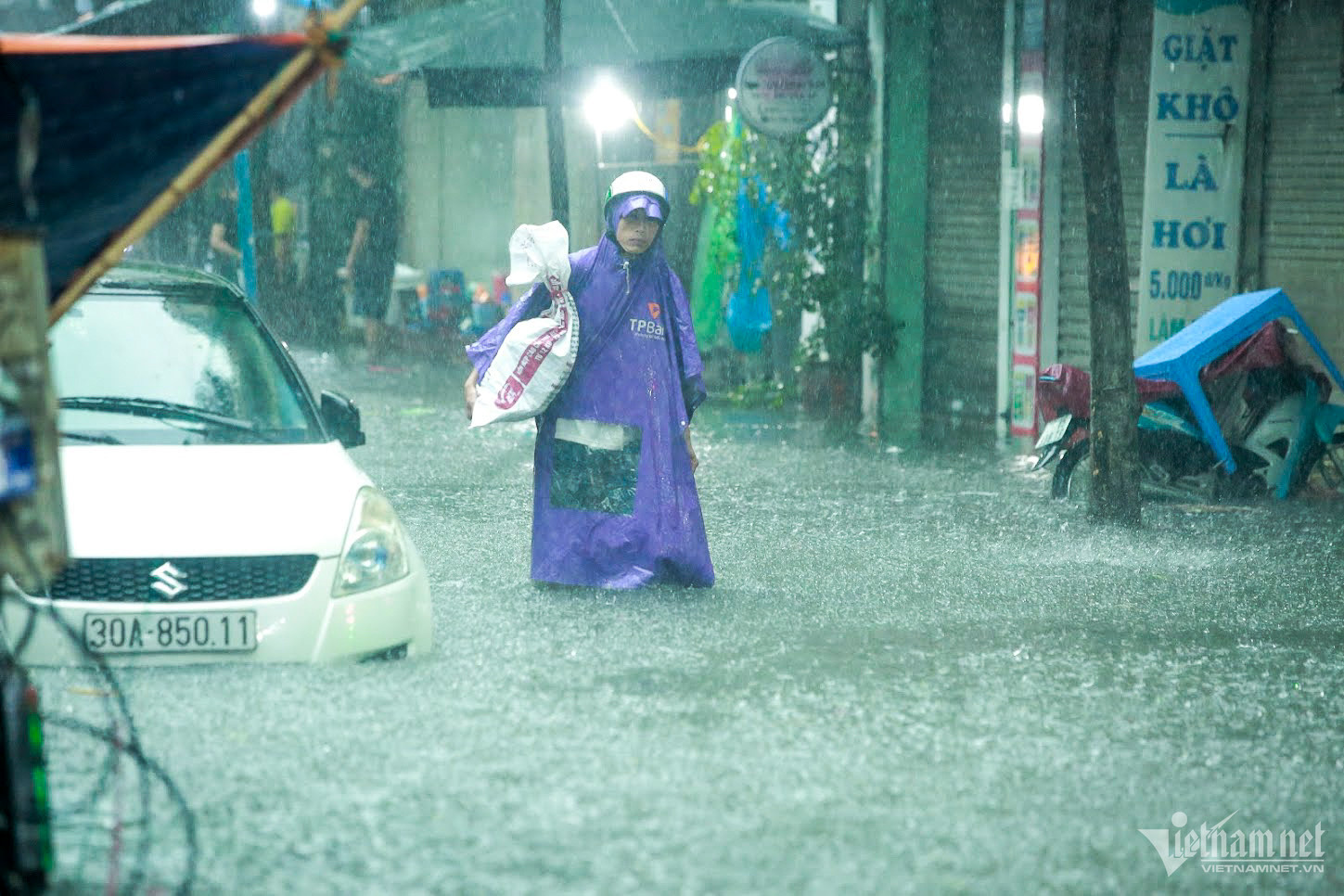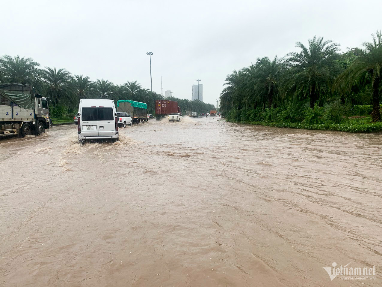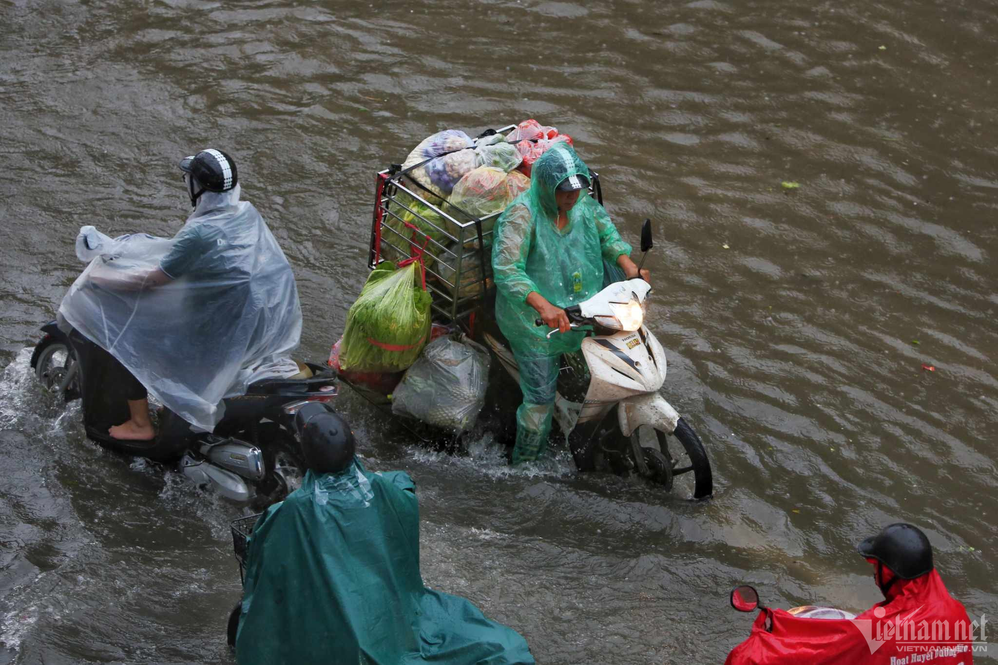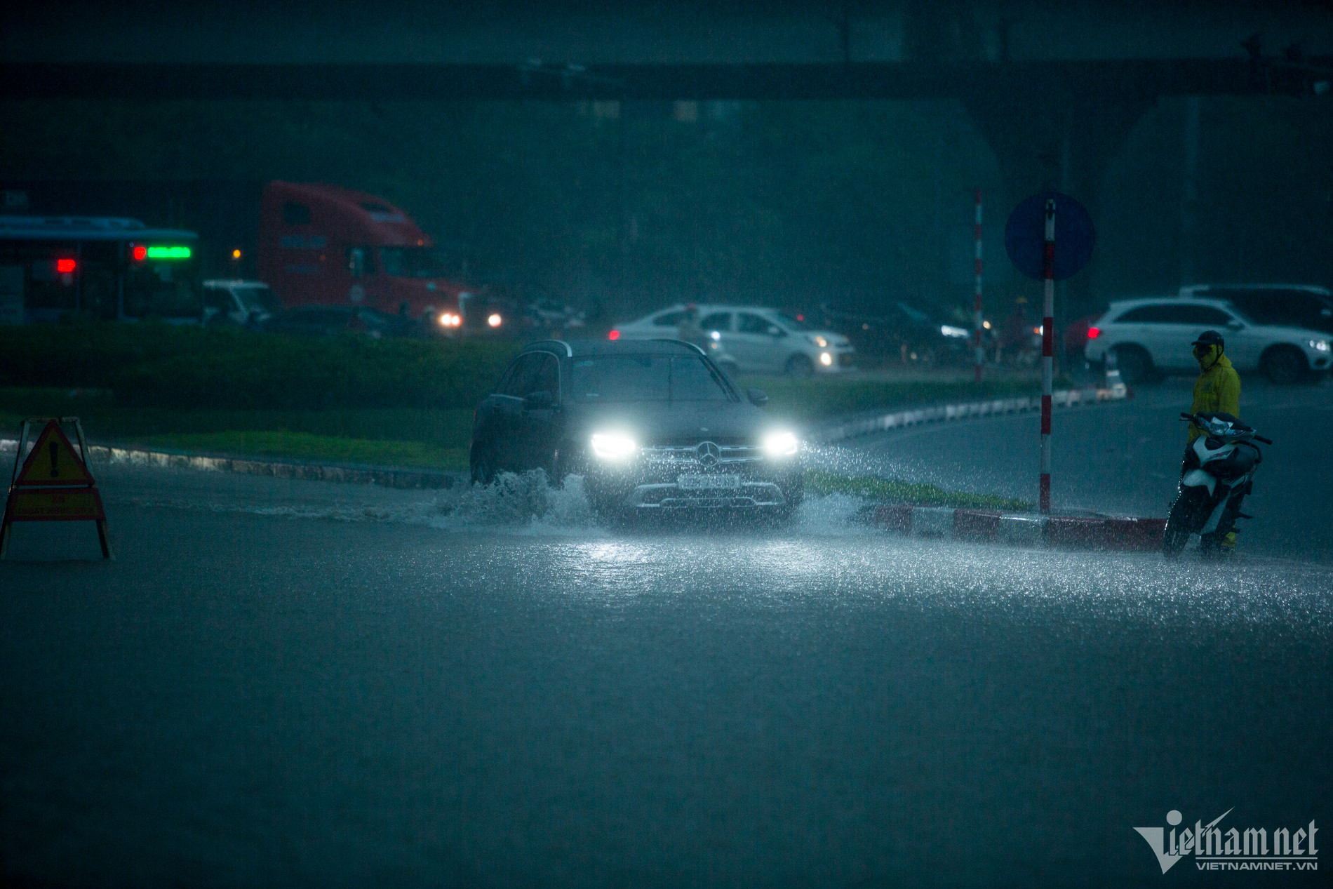 Đến hơn 10h, đường Nguyễn Trãi đoạn qua Trường Đại học Khoa học và xã hội nhân văn vẫn ngập sâu. Mức ngập sâu nhất tại đây đến 0,2m khiến phương tiện di chuyển khó khăn.Nhiều người đã dừng lại không tiếp tục di chuyển qua đoạn ngập để đảm bảo an toànMột số khác đi xe máy ngược chiều khiến tình hình giao thông hỗn loạnĐường Nguyễn Xiển ngập sâu, phương tiện không thể đi lạiNhiều tuyến phố, cửa ngõ Thủ đô như Tố Hữu, Trần Duy Hưng, Đại lộ Thăng Long, Lê Quang Đạo... đều "chìm" trong nước. Giao thông tê liệt, ùn tắc kéo dài, các phương tiện chỉ có thể "chôn chân" tại chỗ.Trên đường Lê Quang Đạo, nước ngập sâu khoảng 50cm khiến các phương tiện khó di chuyển qua.Xe máy phải dắt qua các điểm ngập.Đường Thiên Hiền (Mỹ Đình) cũng ngập sâu, khiến nhiều xe chết máy.Nhiều tuyến phố nước ngập quá nửa bánh xe.Đường Trần Duy Hưng cũng rơi vào tình trạng tương tự.Nhiều xe máy "chết đuối" sau khi bơi qua "biển" nước.Tuyến đường Tố Hữu ngập sâuGhi nhận tại Đại lộ Thăng Long Nước ngập gần lút bánh xe.Người dân tát nước ra khỏi nhà.