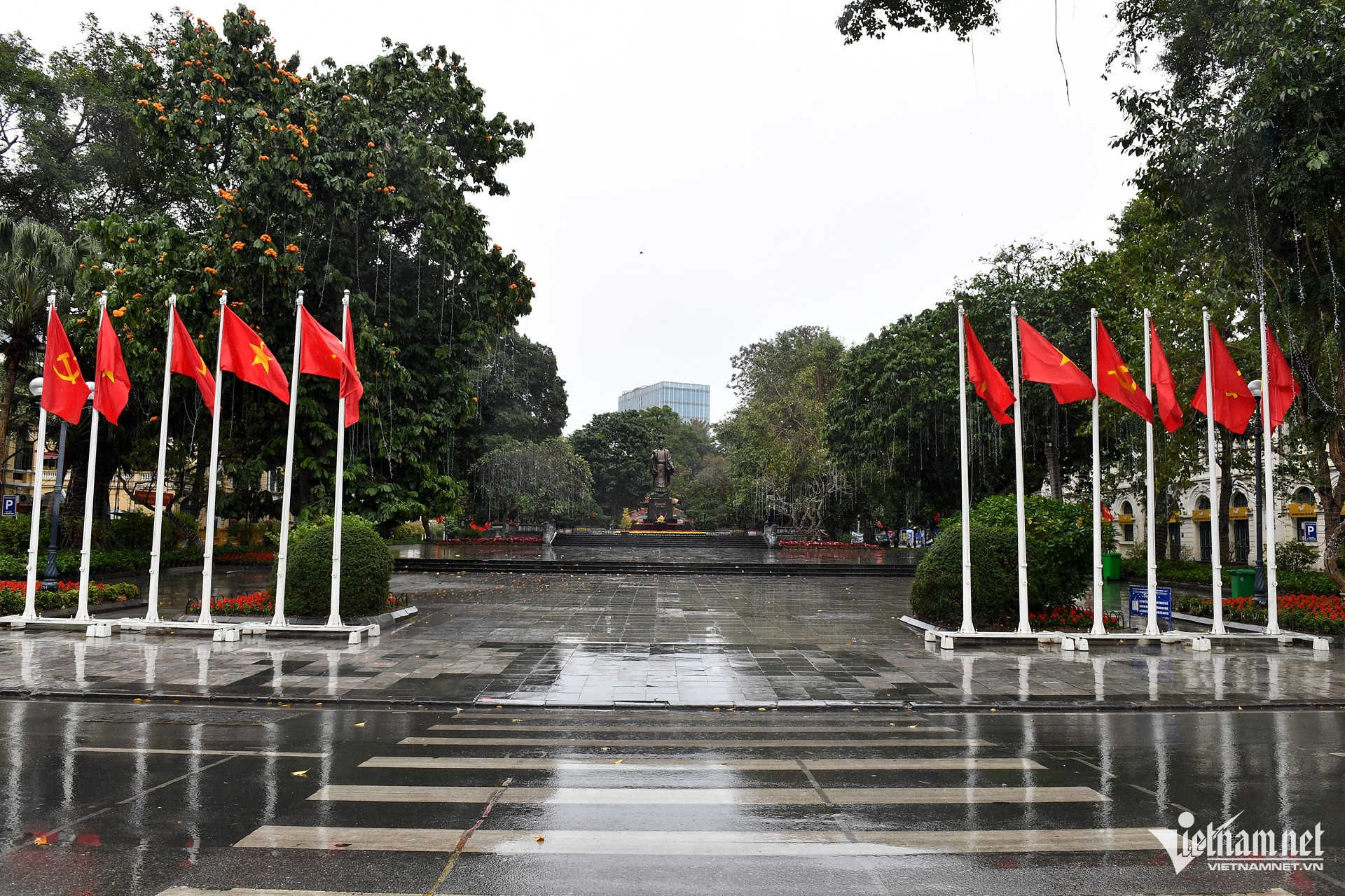 Các khu vực vốn đông người như Công viên Lý Thái Tổ, phố Tràng Tiền, một đoạn Hàng Bài giáp với Đinh Tiên Hoàng đều vắng lặng như thể sáng mùng 1 Tết.