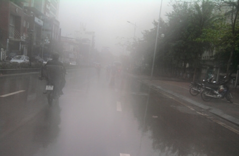 | Hà Nội chìm trong mưa phùn và sương mù (Ảnh: C.Q) |