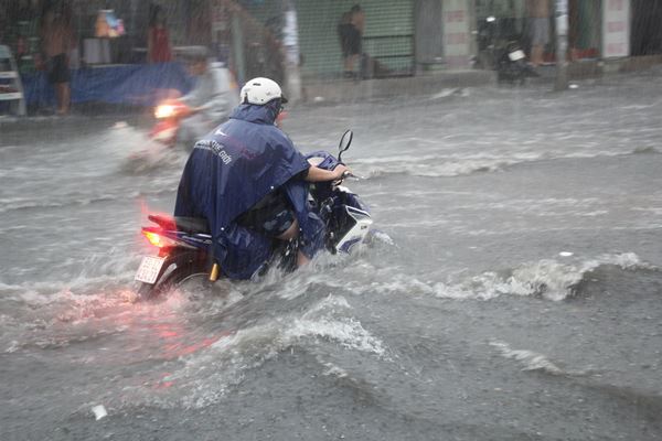 Mưa như trút hơn 2 giờ, đường Sài Gòn ngập nặng