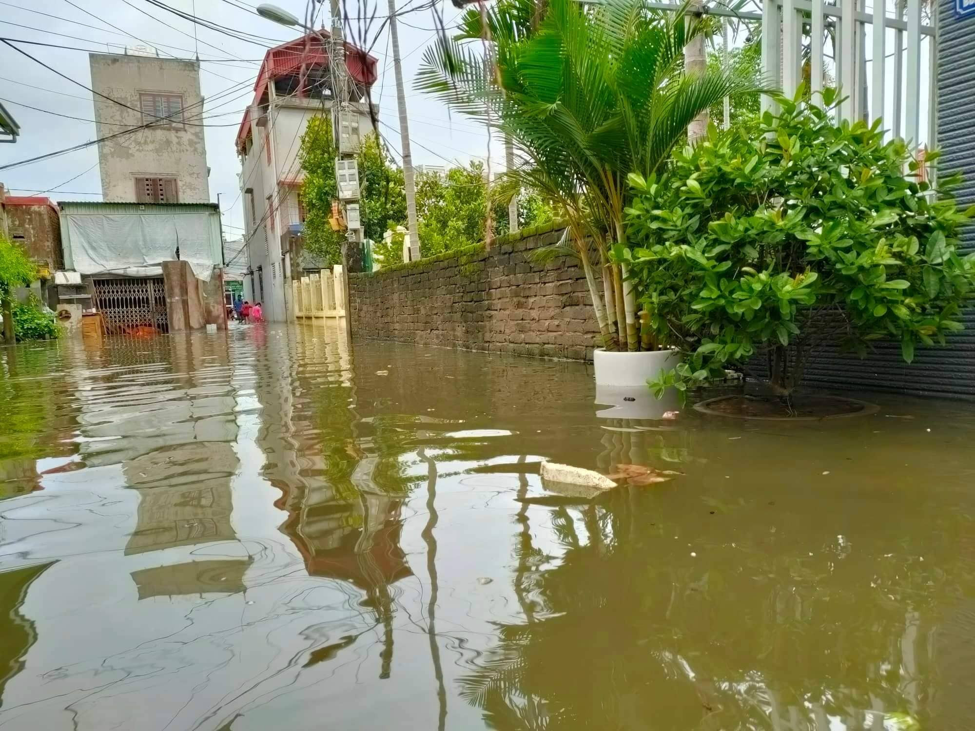 Phố Nguyễn Lương Bằng sáng nay. Ảnh: CTVNước mênh mông trên đường phố ở TP Hải Dương. Ảnh: CTV