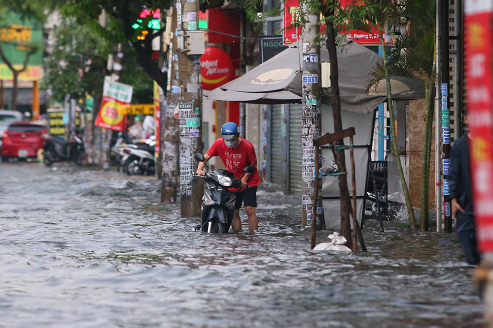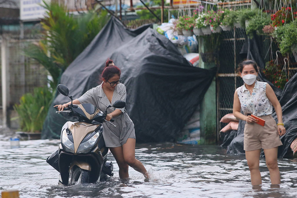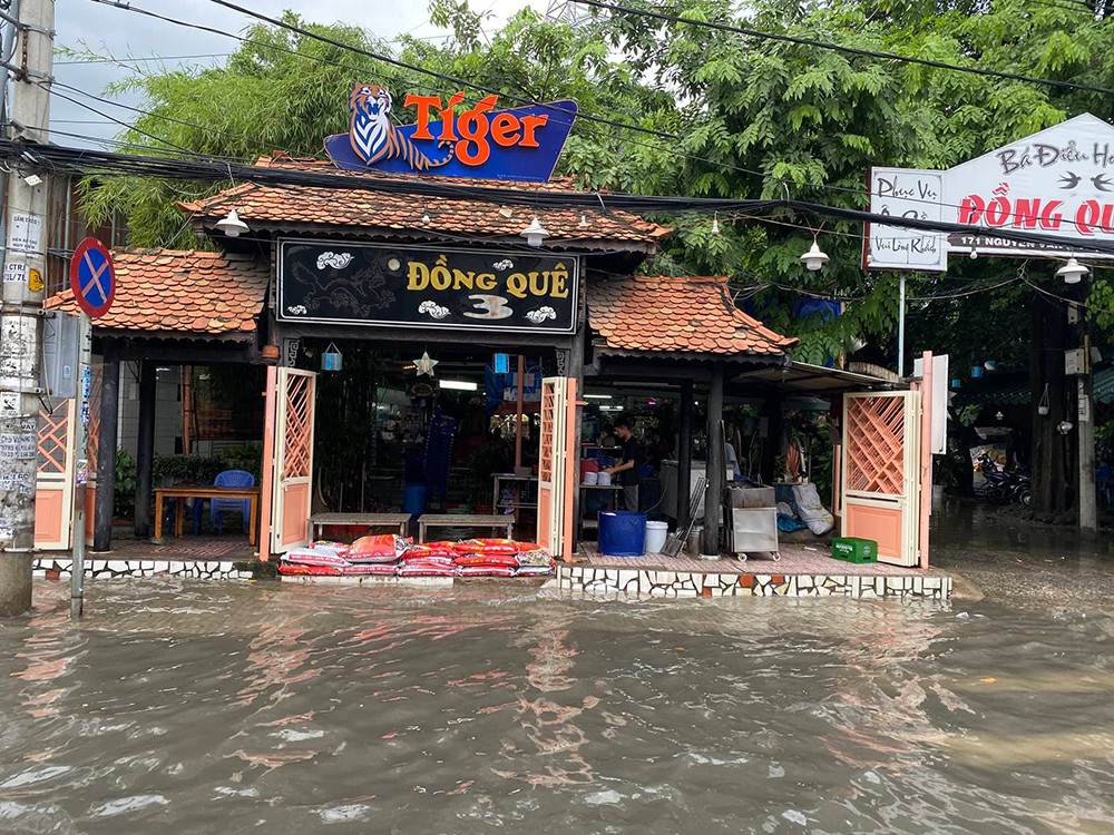 Nước rút chậm sau mưa khiến nhiều hàng quán trên đường Nguyễn Văn Khối khá vất vả chống nước tràn vào nhà. Một số quán phải dùng bao tải chứa cát để ngăn nước, một số quán đóng cửa sớm.Nước ngập khiến việc di chuyển của người dân khó khănNgập cả nửa bánh xeNgười dân vất vả đẩy bộ khi xe chết máy do bị ngập nướcNước ngập nhiều tuyến đường